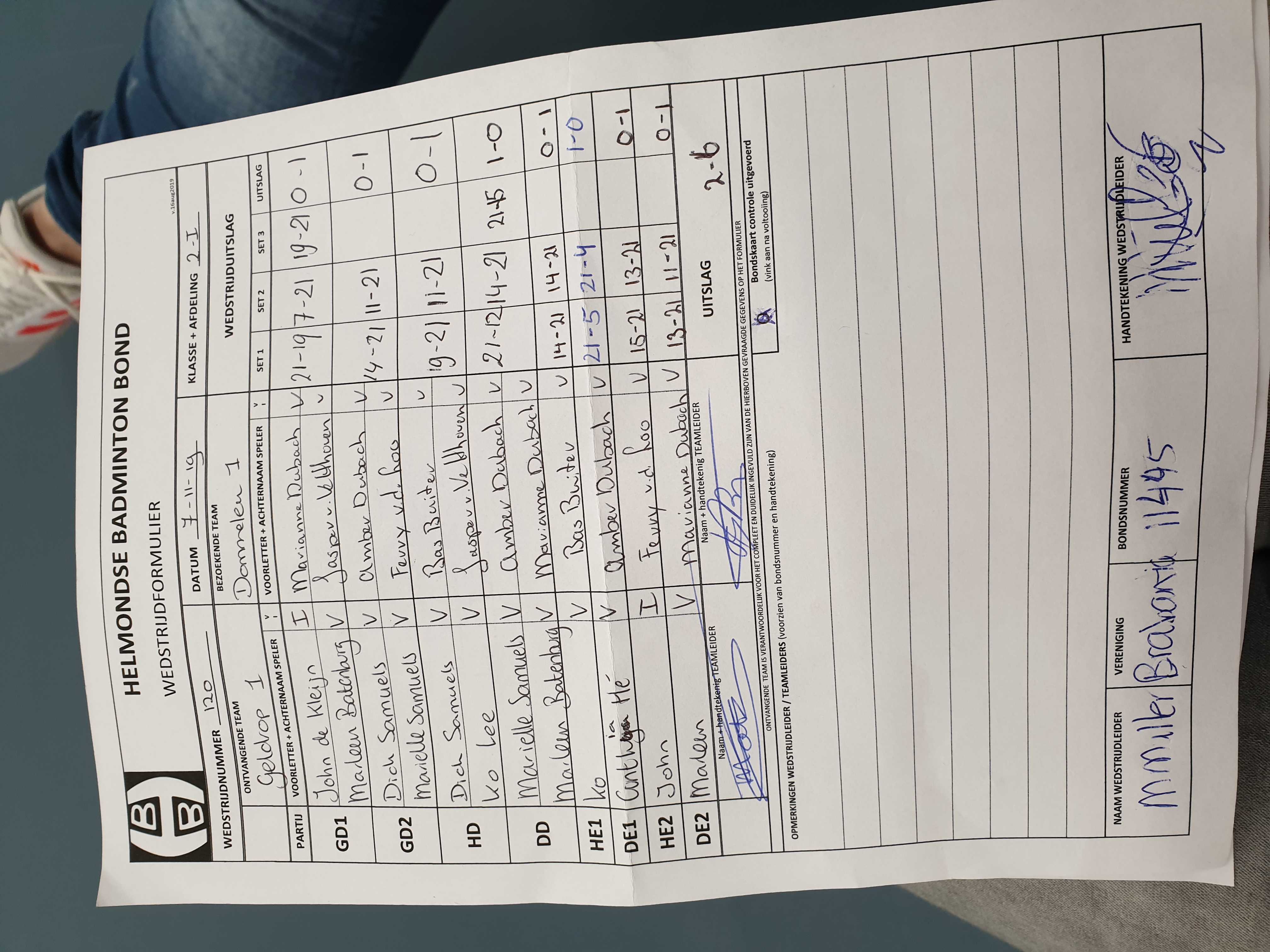 | 120 | do. 07-11-2019 | Geldrop 1 | - | Dommelen 1 | 15 | 2 - 6 | |||