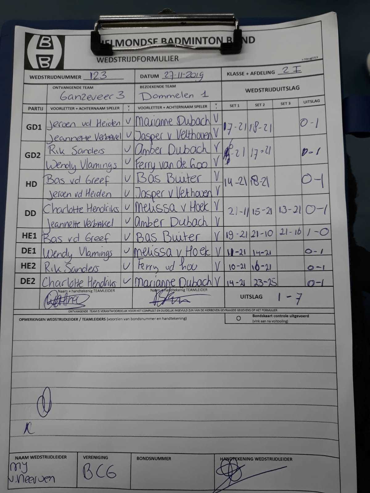 | 123 | wo. 27-11-2019 | Ganzeveer 3 | - | Dommelen 1 | 12 | 1 - 7 | |||