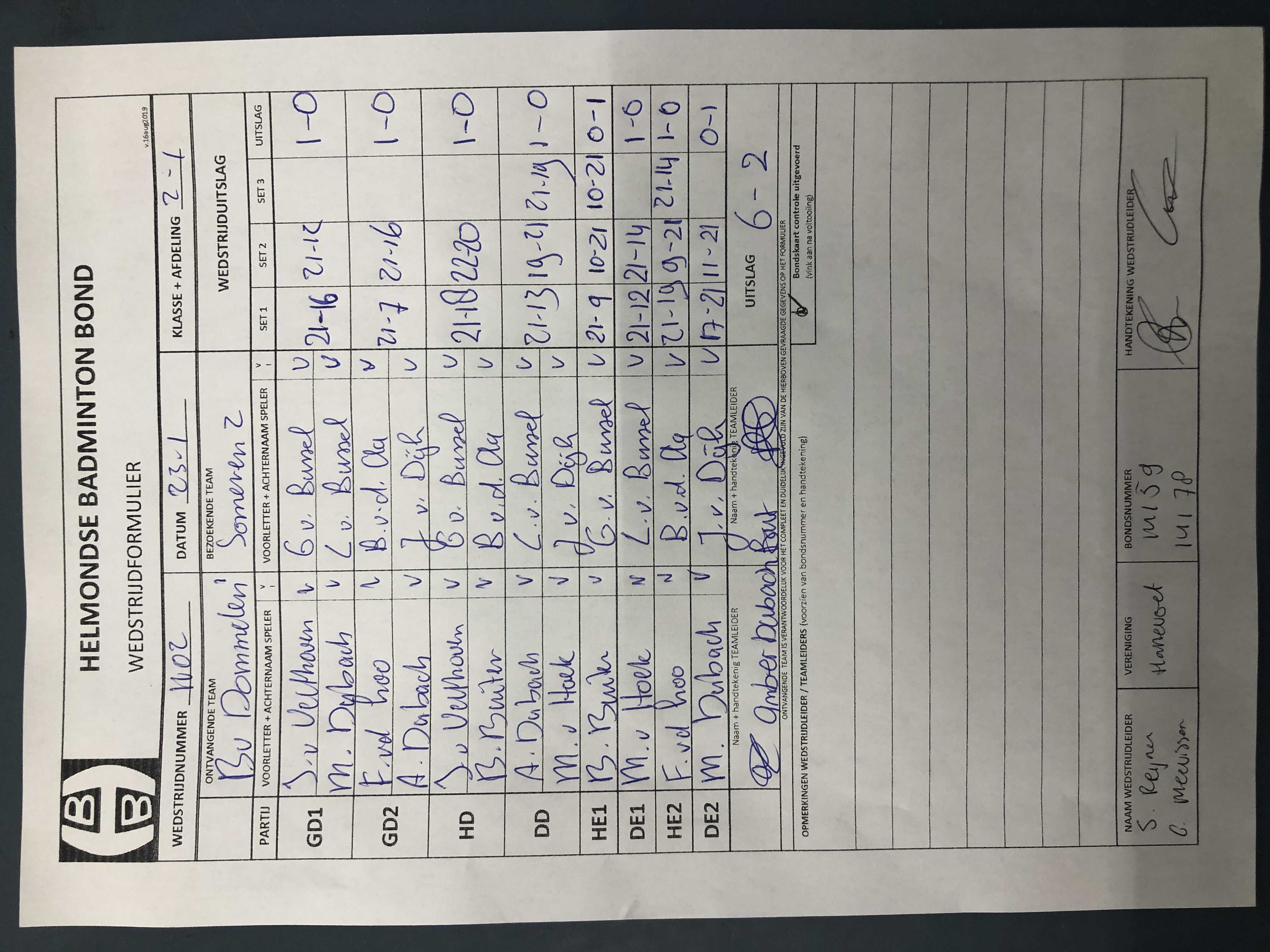 | 1102 | do. 23-01-2020 | Dommelen 1 | - | Someren 2 | 1 | 6 - 2 | |||