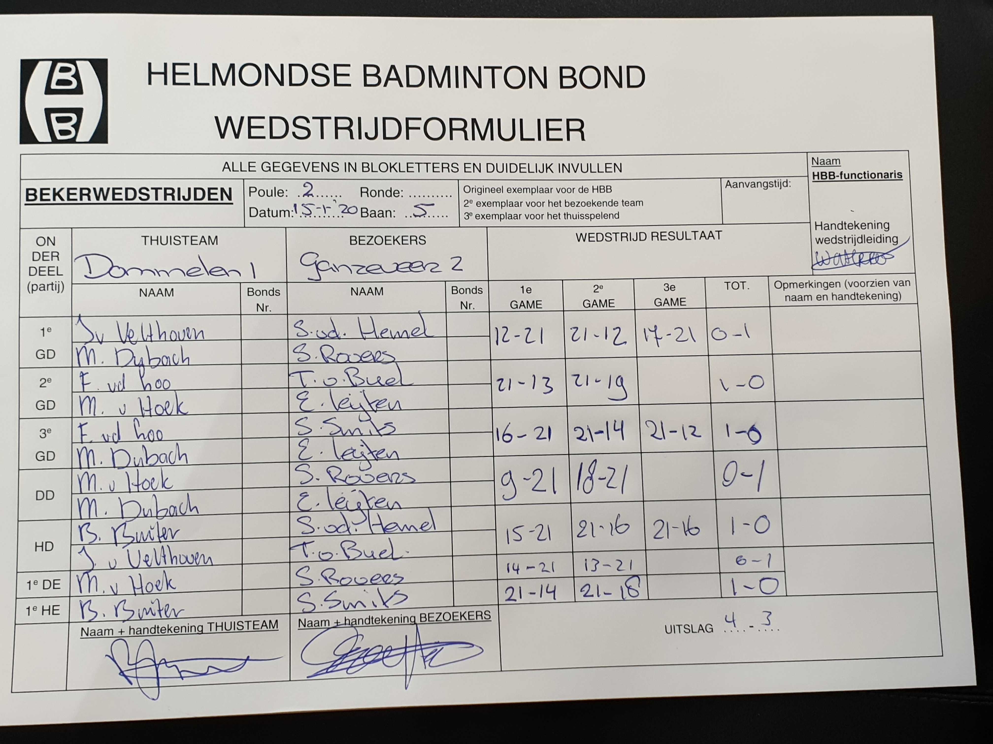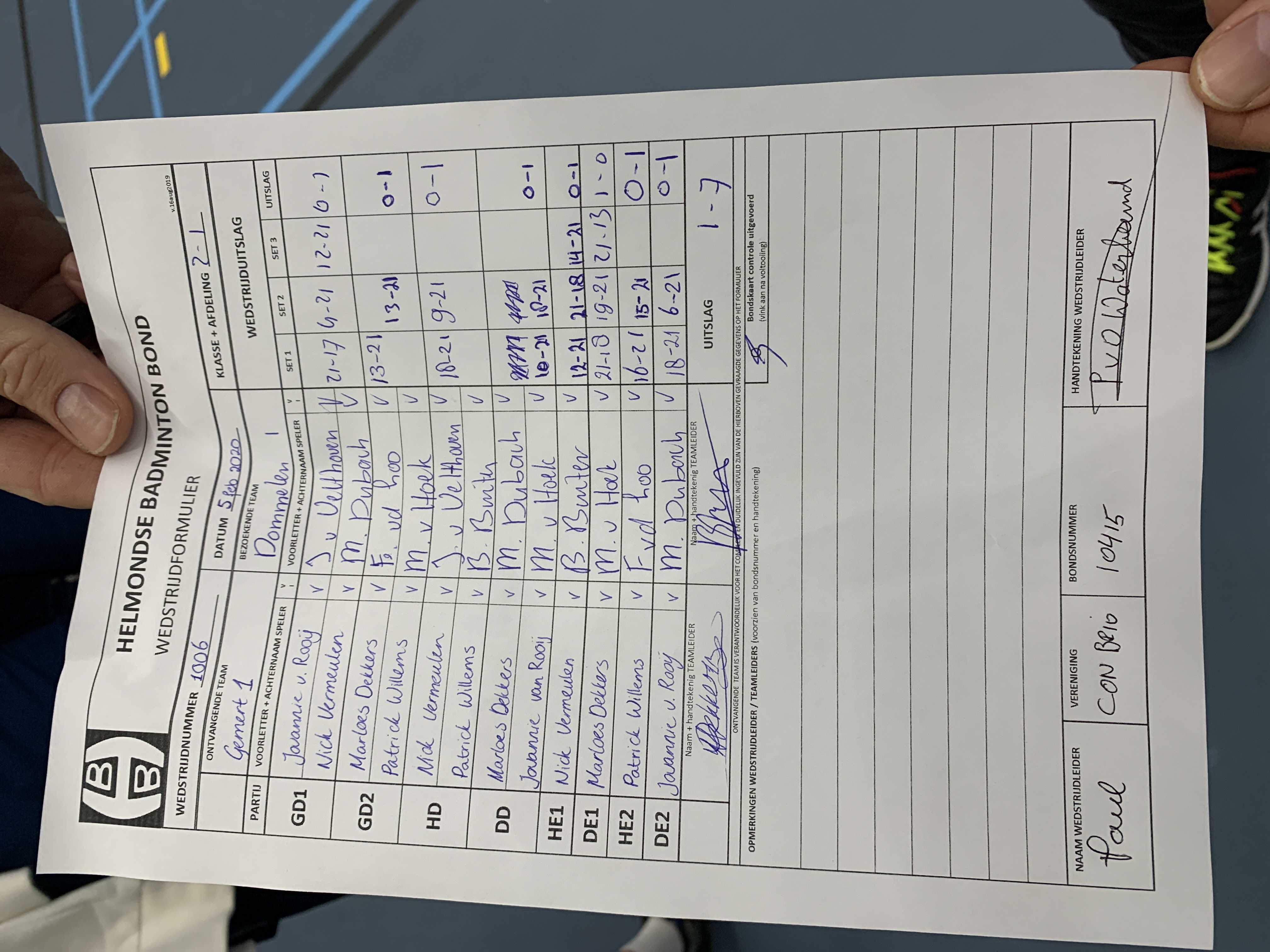 | 1106 | wo. 05-02-2020 | Gemert 1 | - | Dommelen 1 | 4 | 1 - 7 | |||