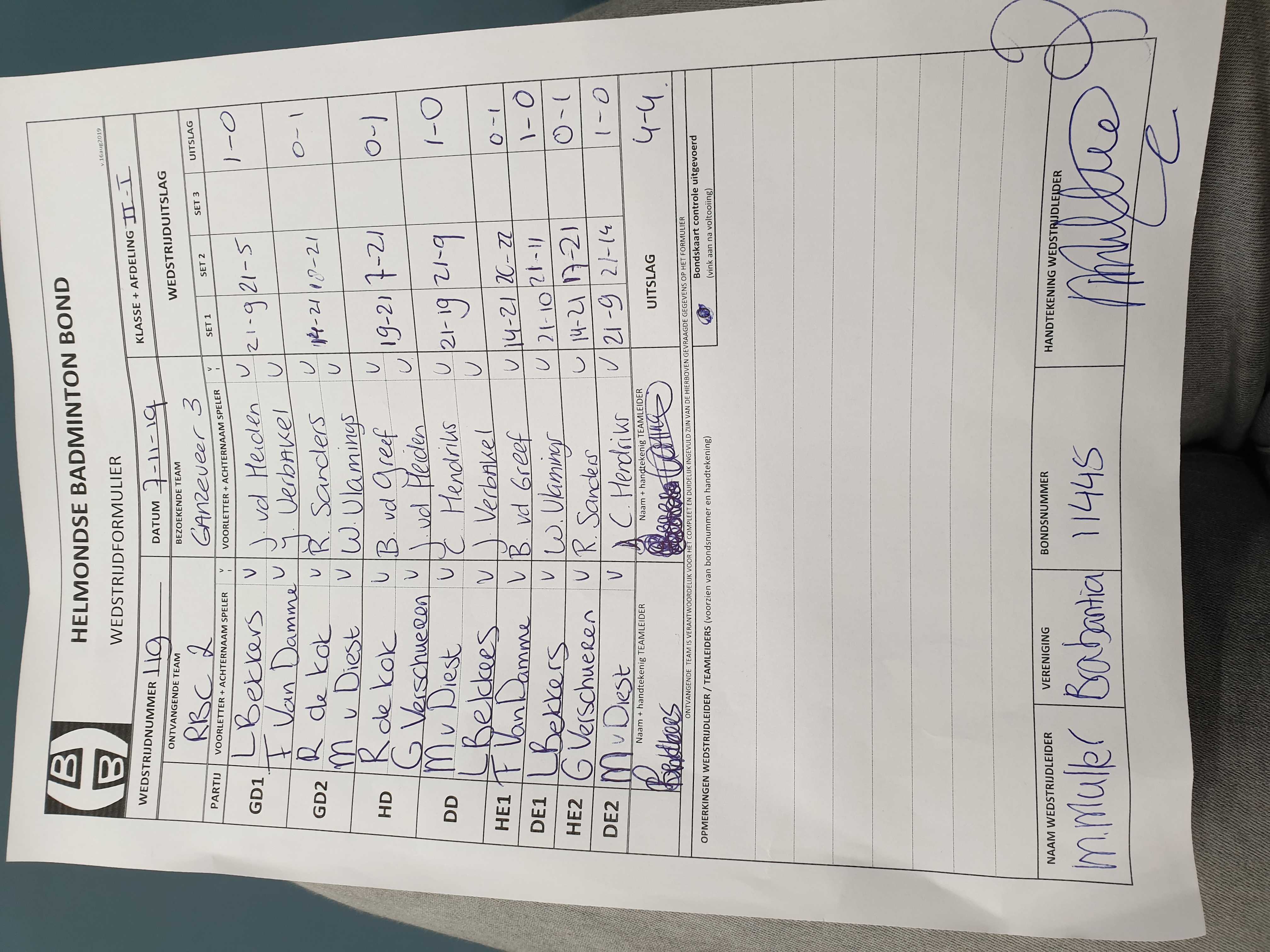 | 119 | do. 07-11-2019 | RBC 2 | - | Ganzeveer 3 | 14 | 4 - 4 | |||