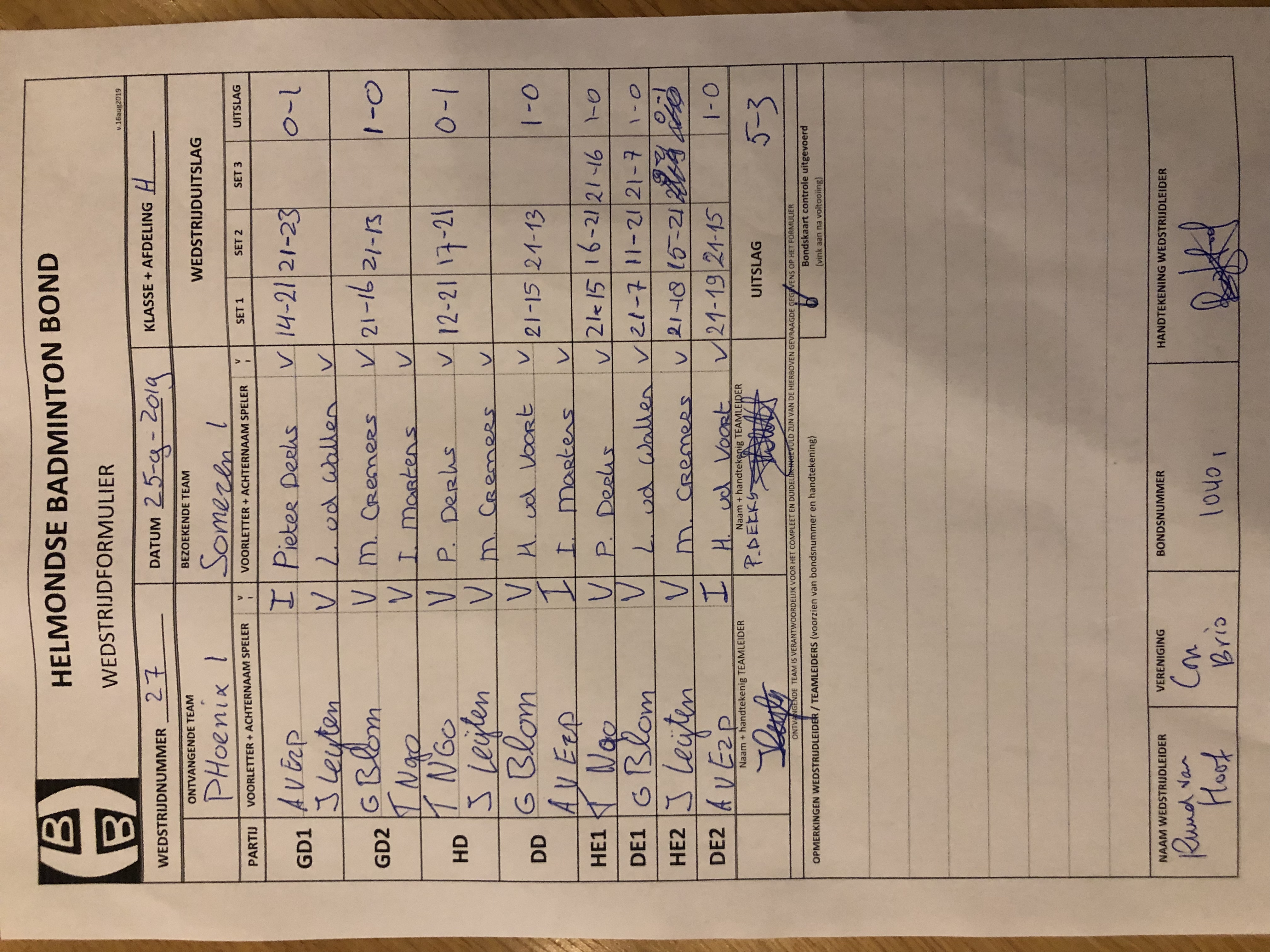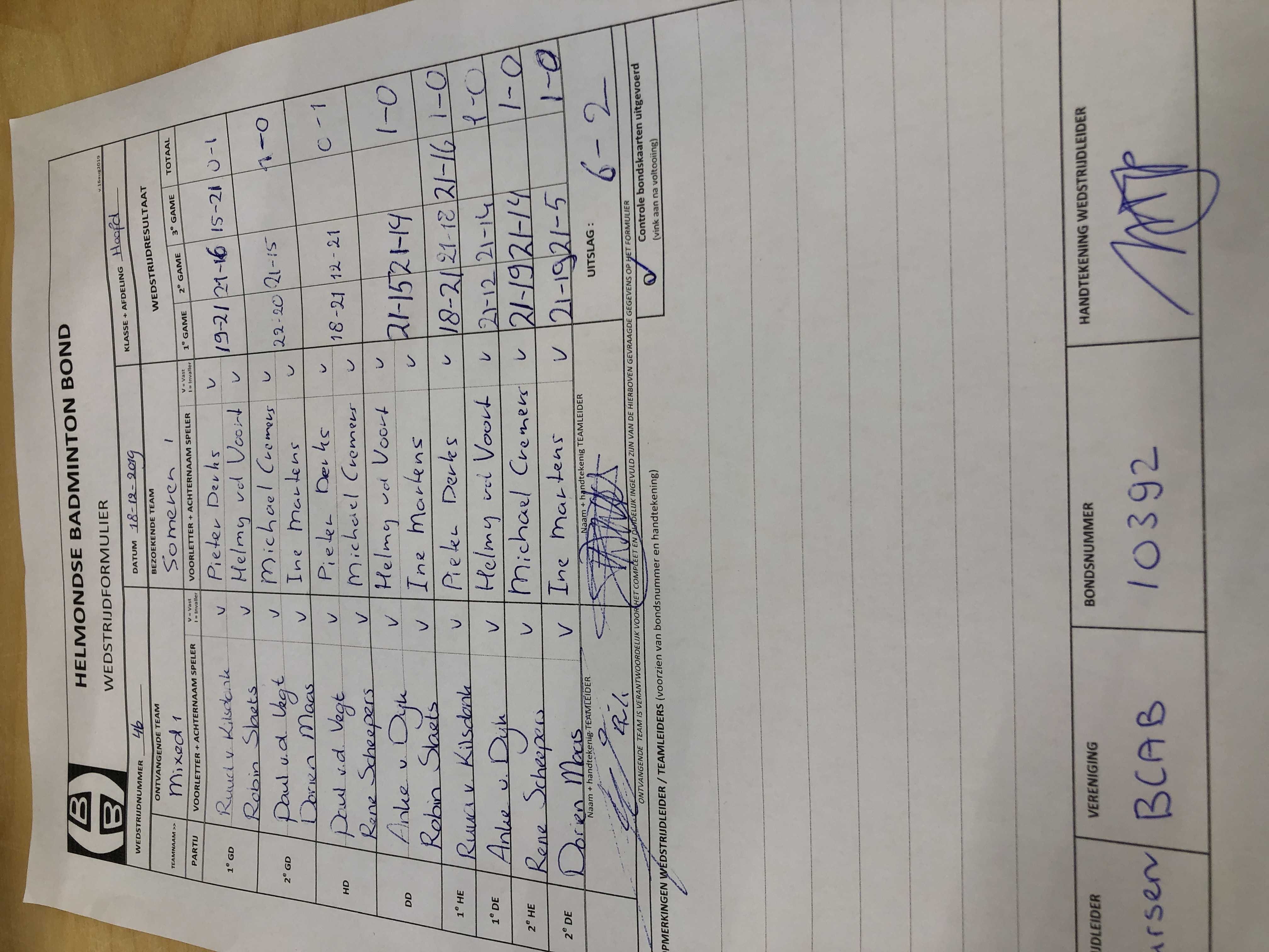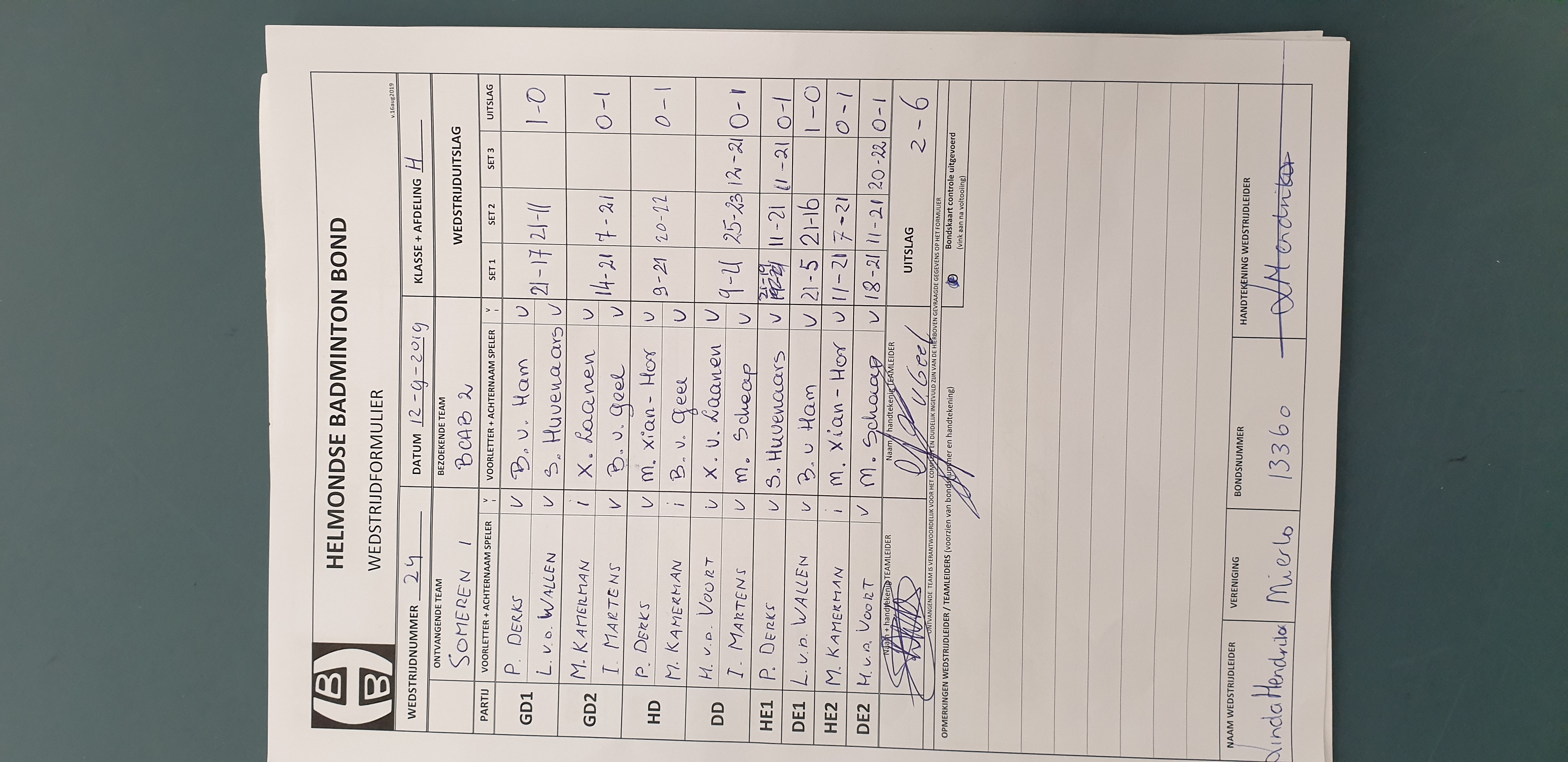 | 24 | do. 12-09-2019 | Someren 1 | - | BCAB 2 | 12 | 2 - 6 | |||