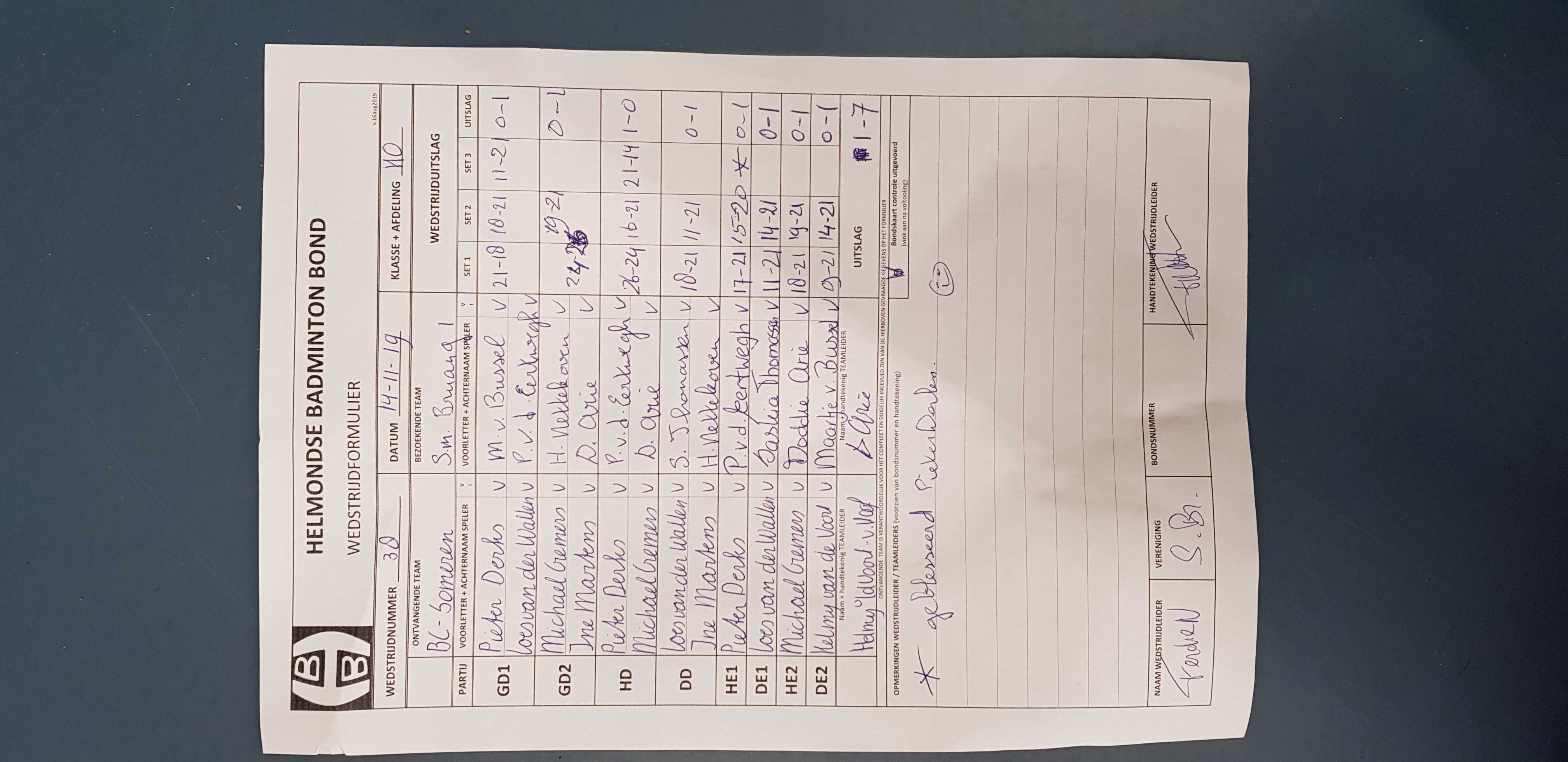 | 38 | do. 14-11-2019 | Someren 1 | - | Smashing Bruang 1 | 13 | 1 - 7 | |||