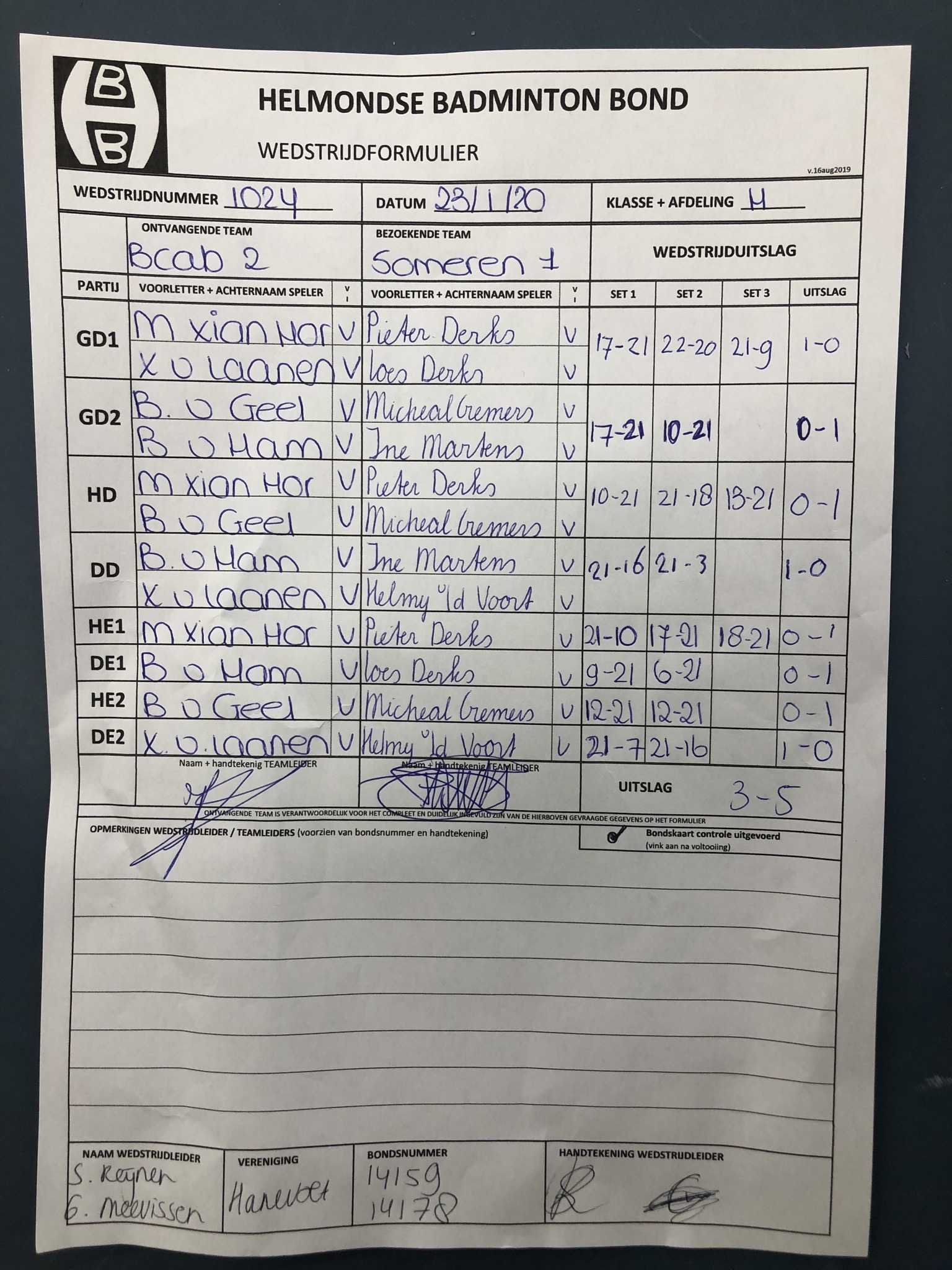 | 1024 | do. 23-01-2020 | BCAB 2 | - | Someren 1 | 15 | 3 - 5 | |||