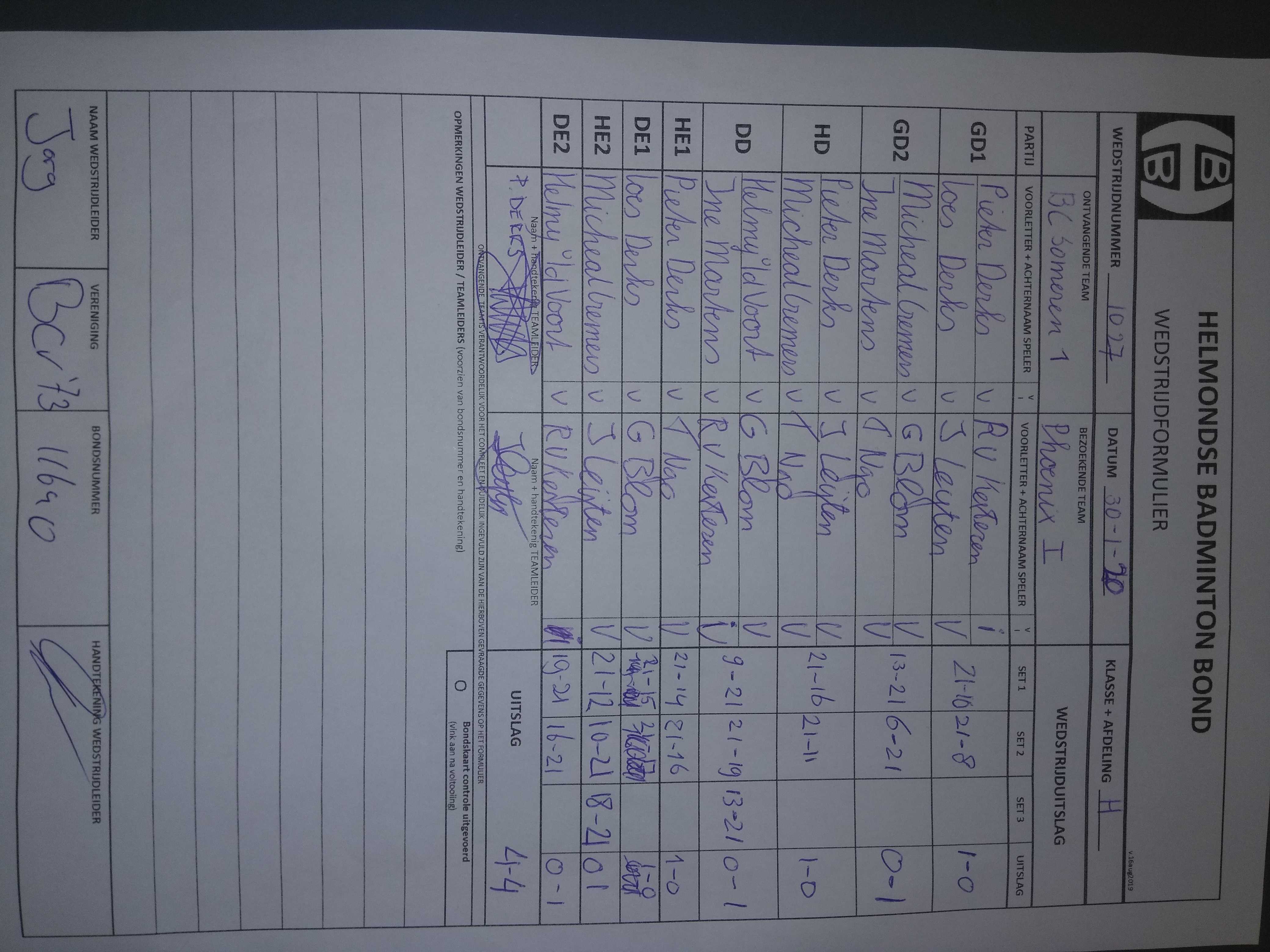 | 1027 | do. 30-01-2020 | Someren 1 | - | Phoenix 1 | 14 | 4 - 4 | |||