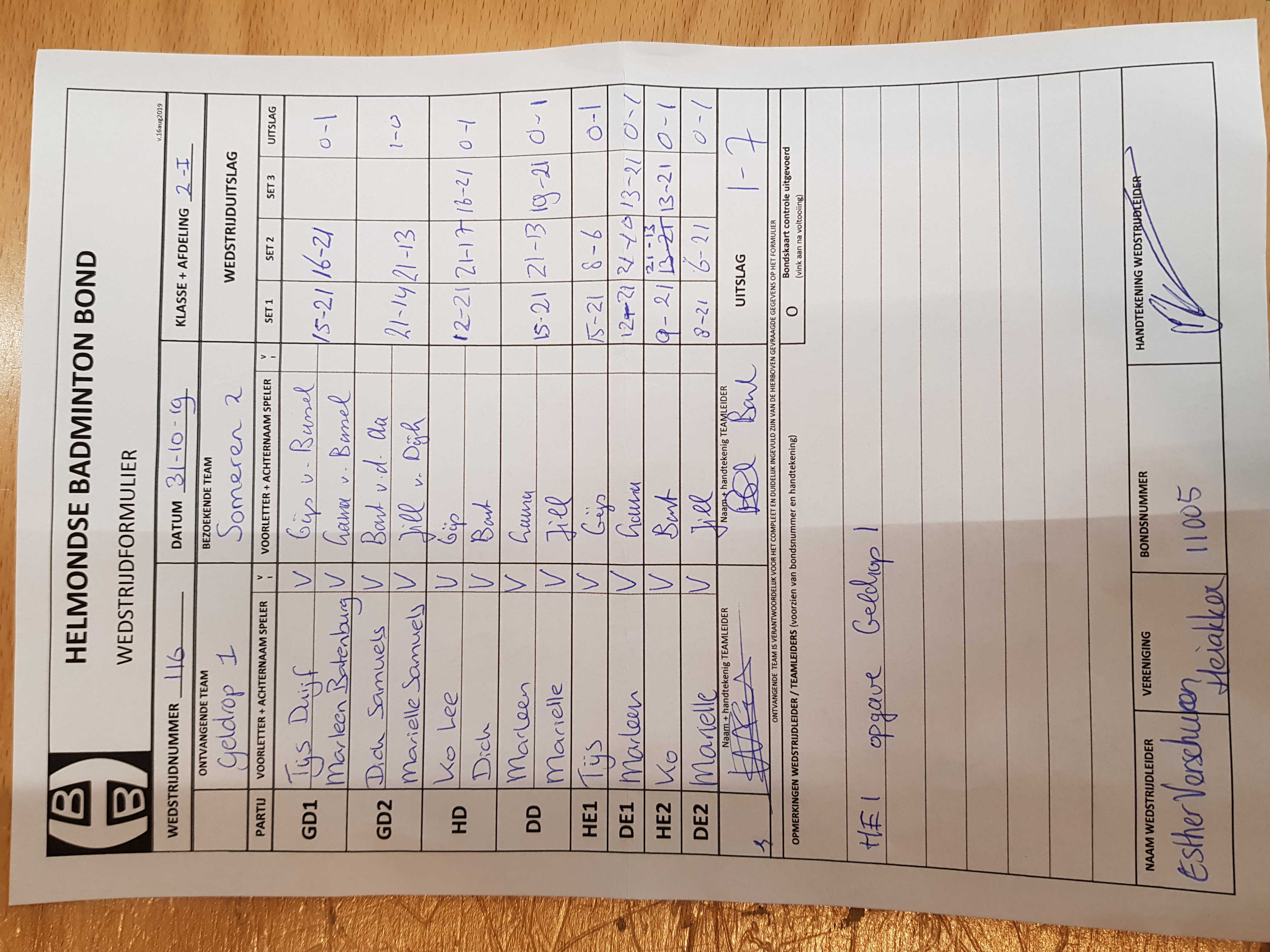 | 116 | do. 31-10-2019 | Geldrop 1 | - | Someren 2 | 2 | 1 - 7 | |||