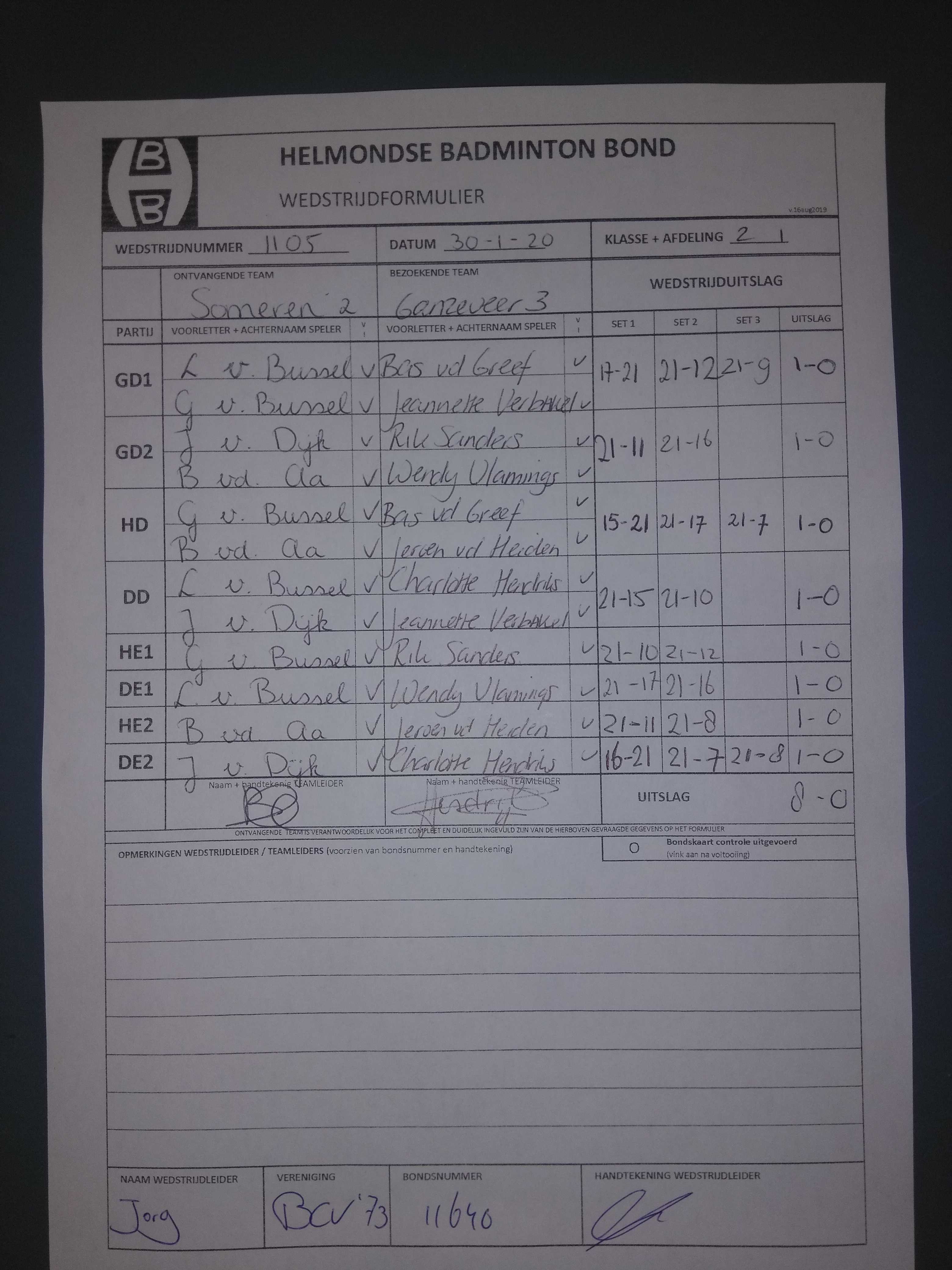 | 1105 | do. 30-01-2020 | Someren 2 | - | Ganzeveer 3 | 11 | 8 - 0 | |||