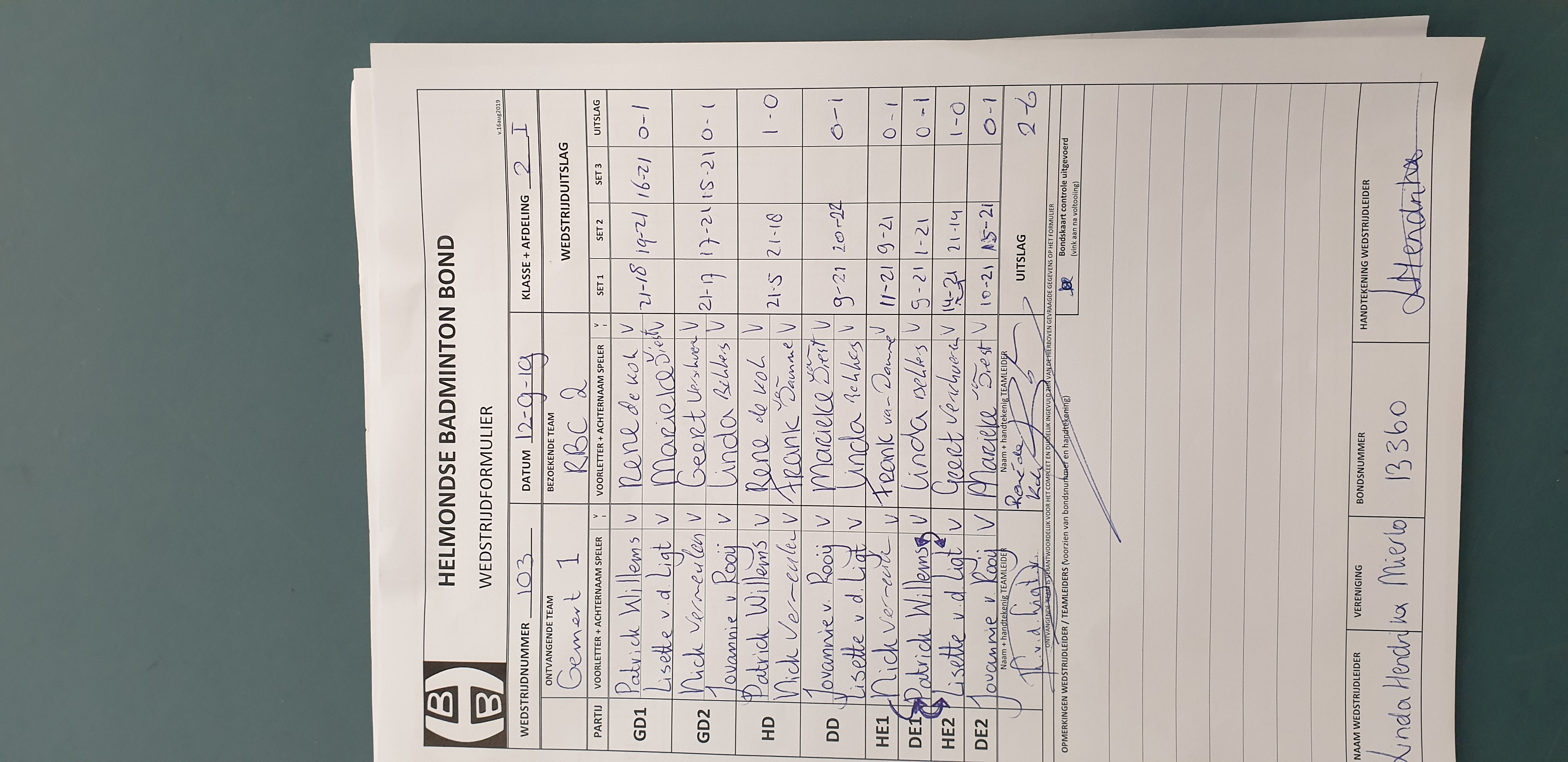 | 103 | do. 12-09-2019 | Gemert 1 | - | RBC 2 | 3 | 2 - 6 | |||