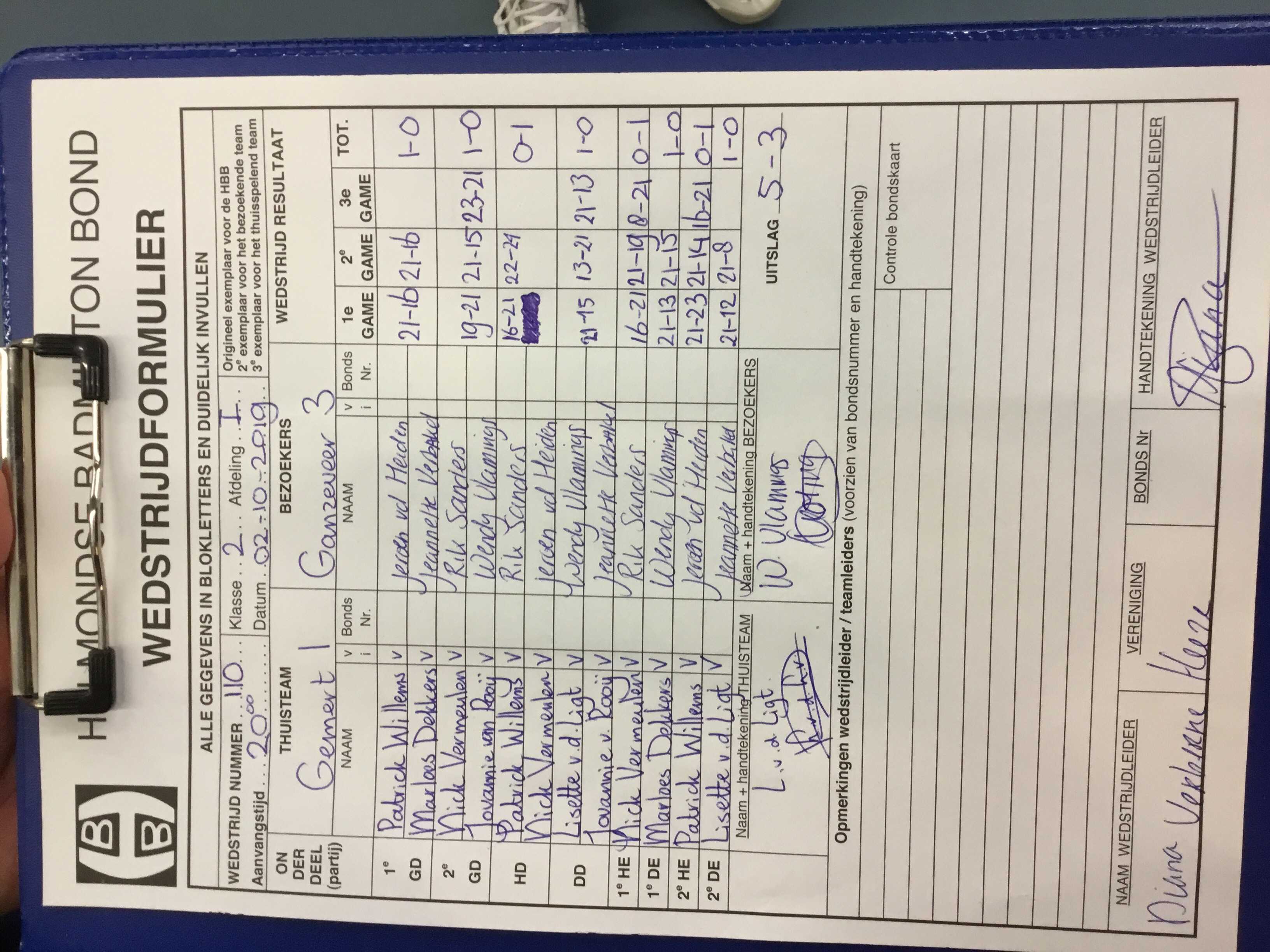 | 110 | wo. 02-10-2019 | Gemert 1 | - | Ganzeveer 3 | 12 | 5 - 3 | |||