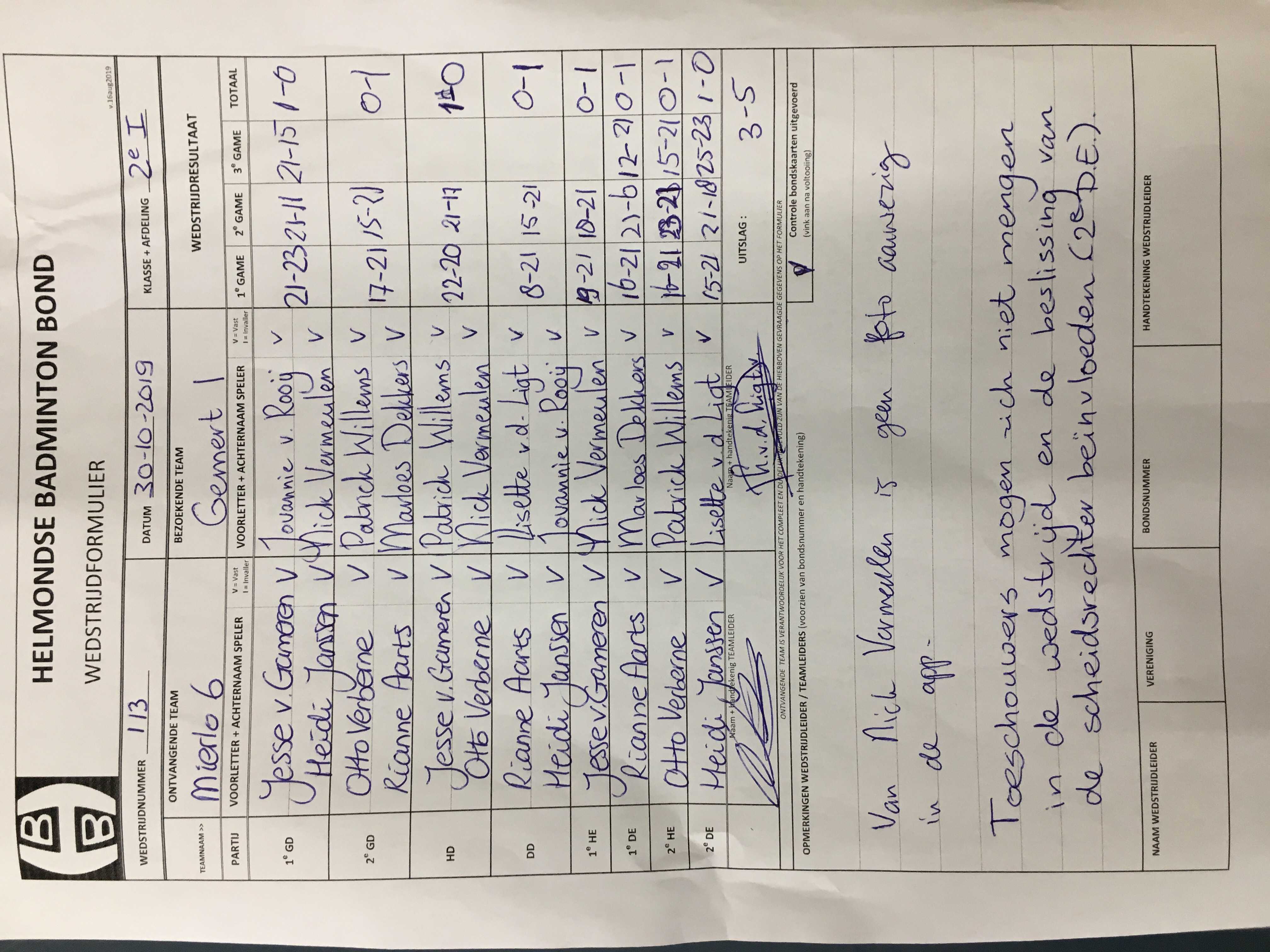 | 113 | wo. 30-10-2019 | Mierlo 6 | - | Gemert 1 | 12 | 3 - 5 | |||