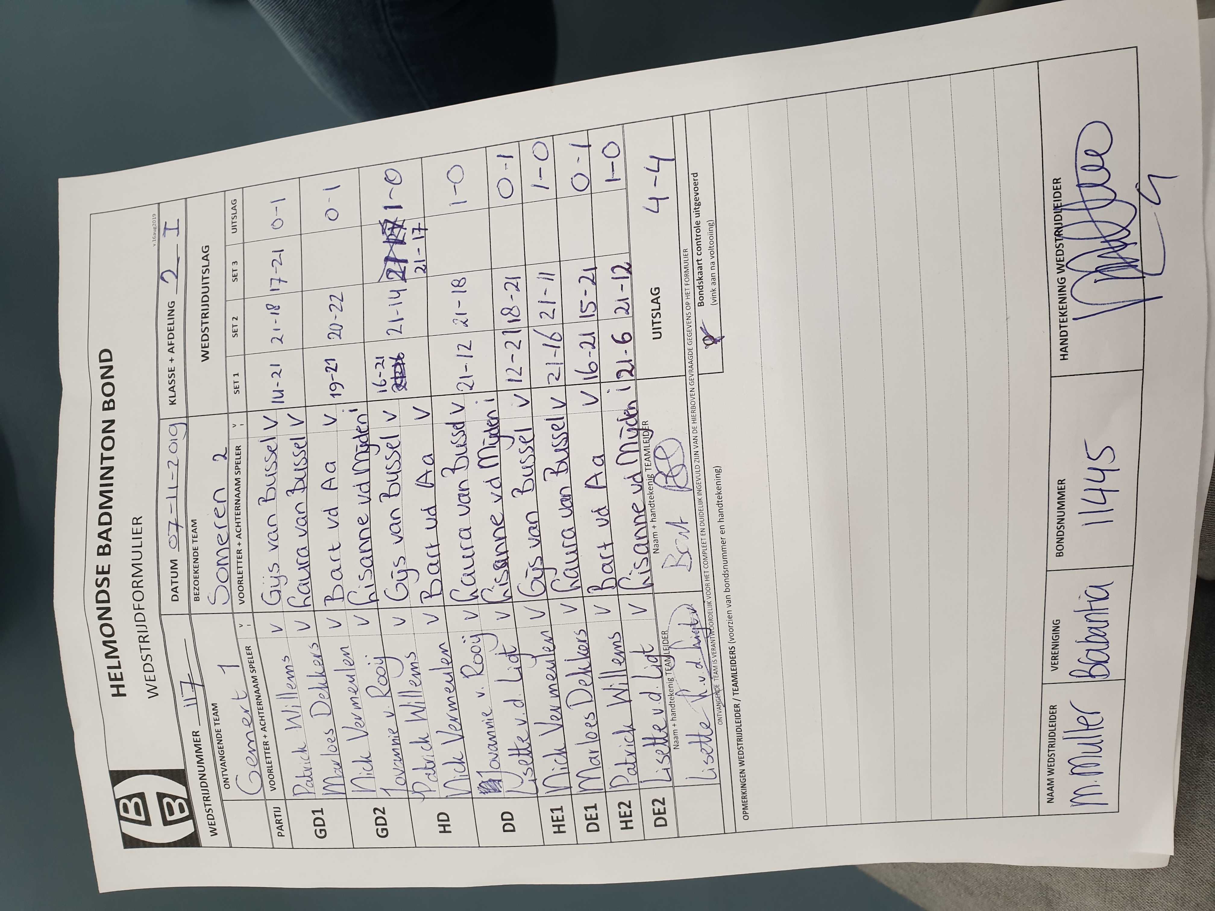 | 117 | do. 07-11-2019 | Gemert 1 | - | Someren 2 | 13 | 4 - 4 | |||