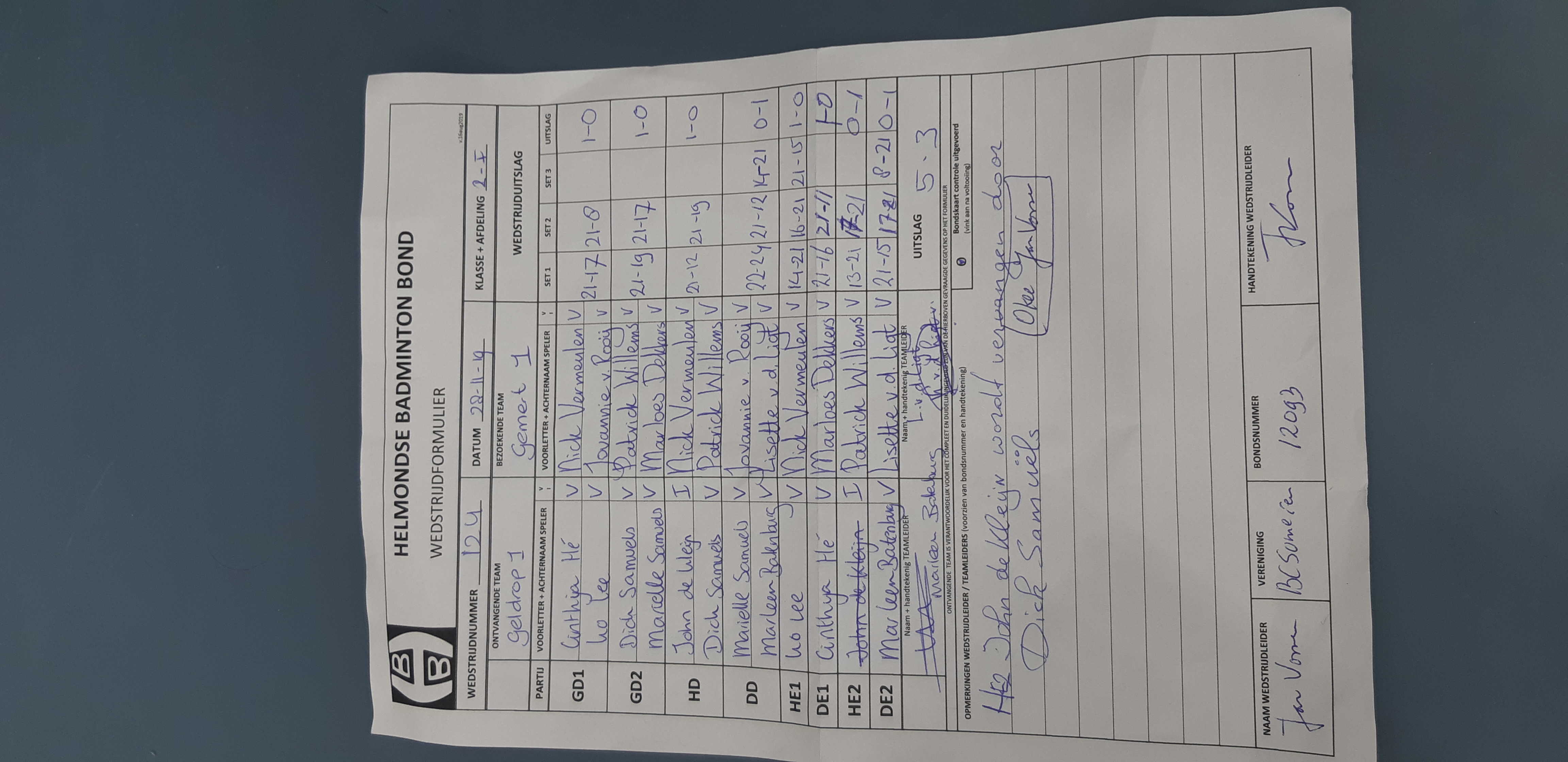 | 124 | do. 28-11-2019 | Geldrop 1 | - | Gemert 1 | 13 | 5 - 3 | |||