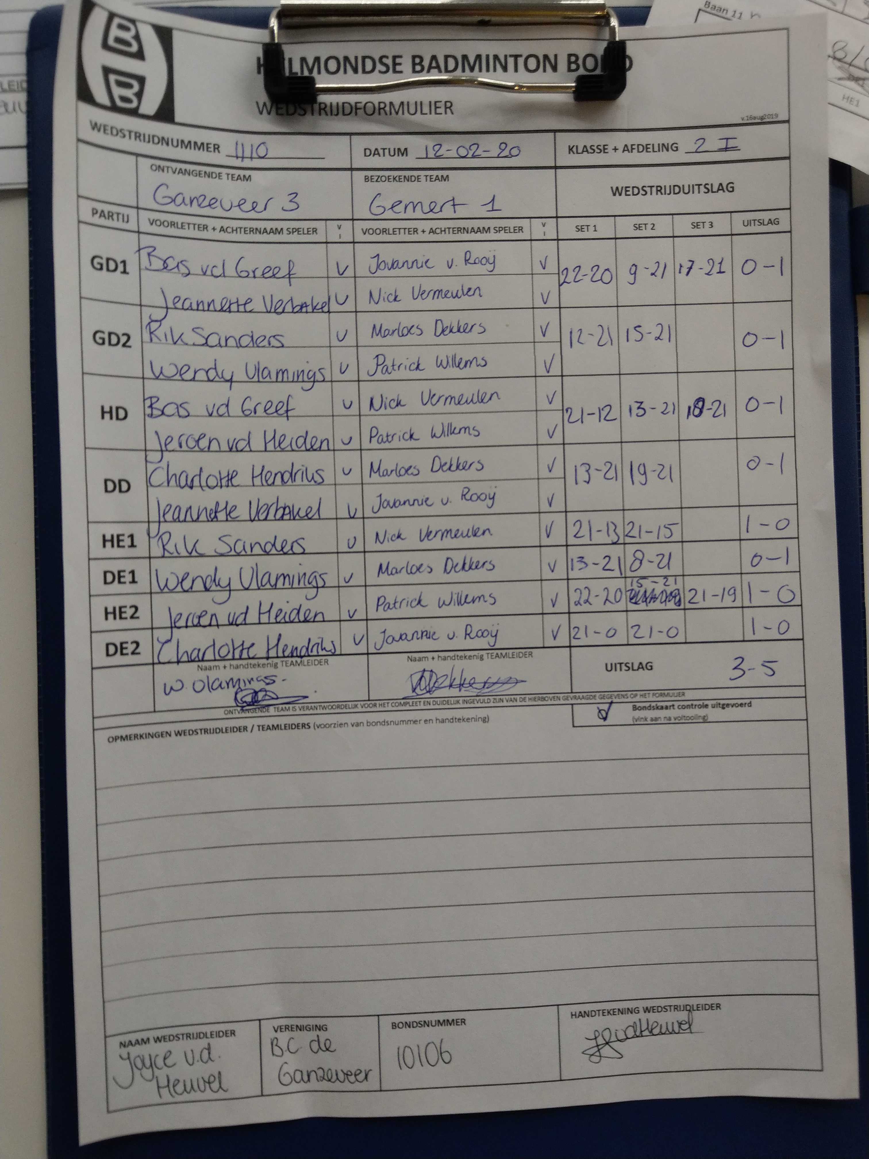 | 1110 | wo. 12-02-2020 | Ganzeveer 3 | - | Gemert 1 | 14 | 3 - 5 | |||