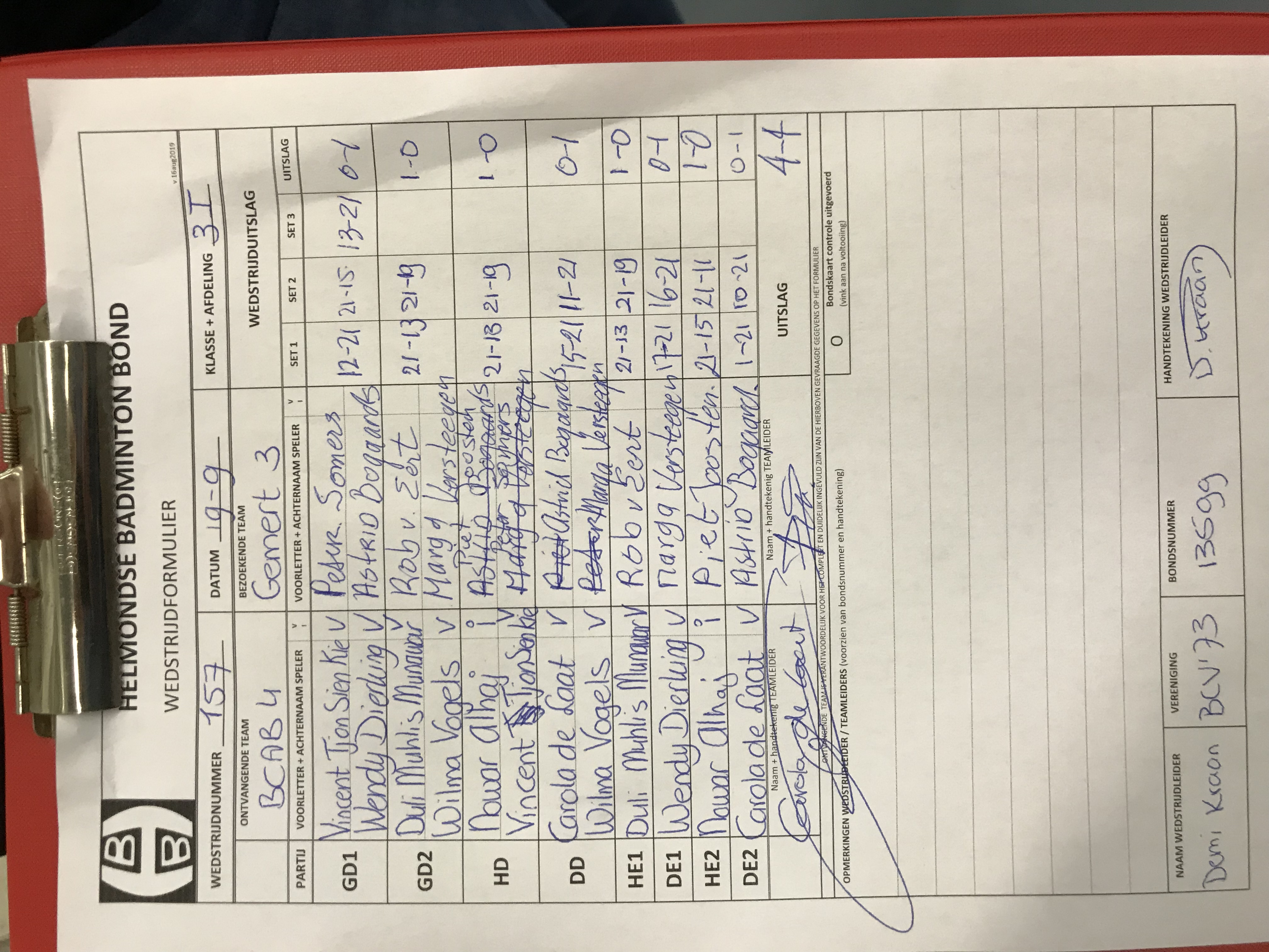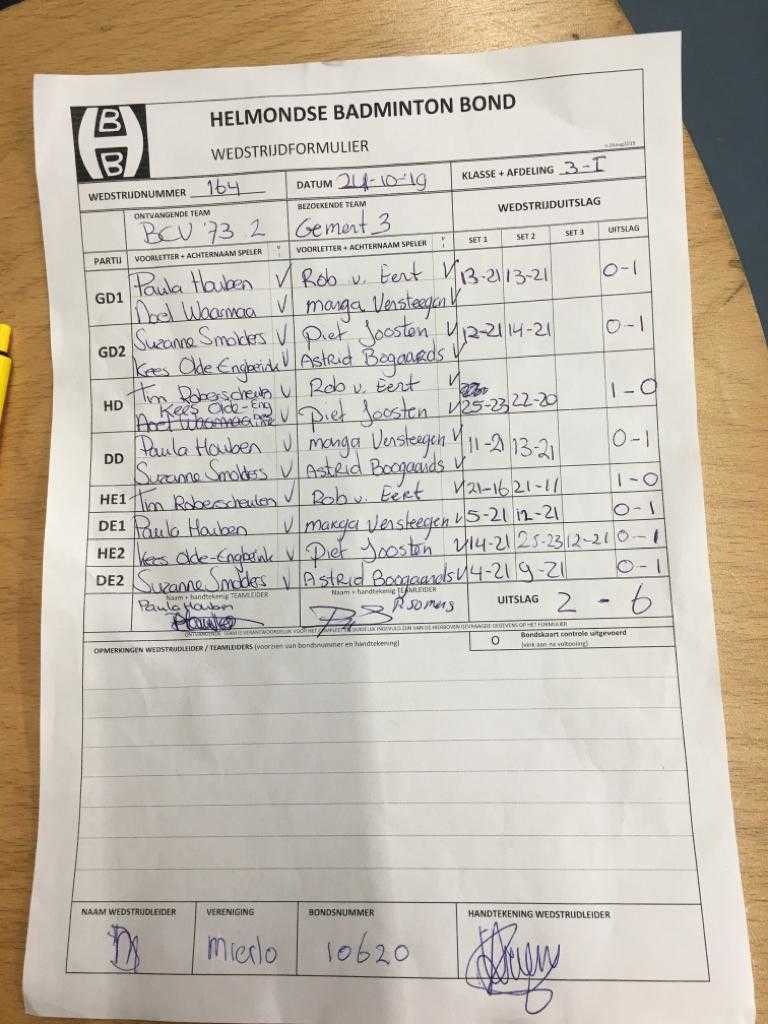 | 157 | do. 19-09-2019 | BCAB 4 | - | Gemert 3 | 10 | 2 - 6 | |||