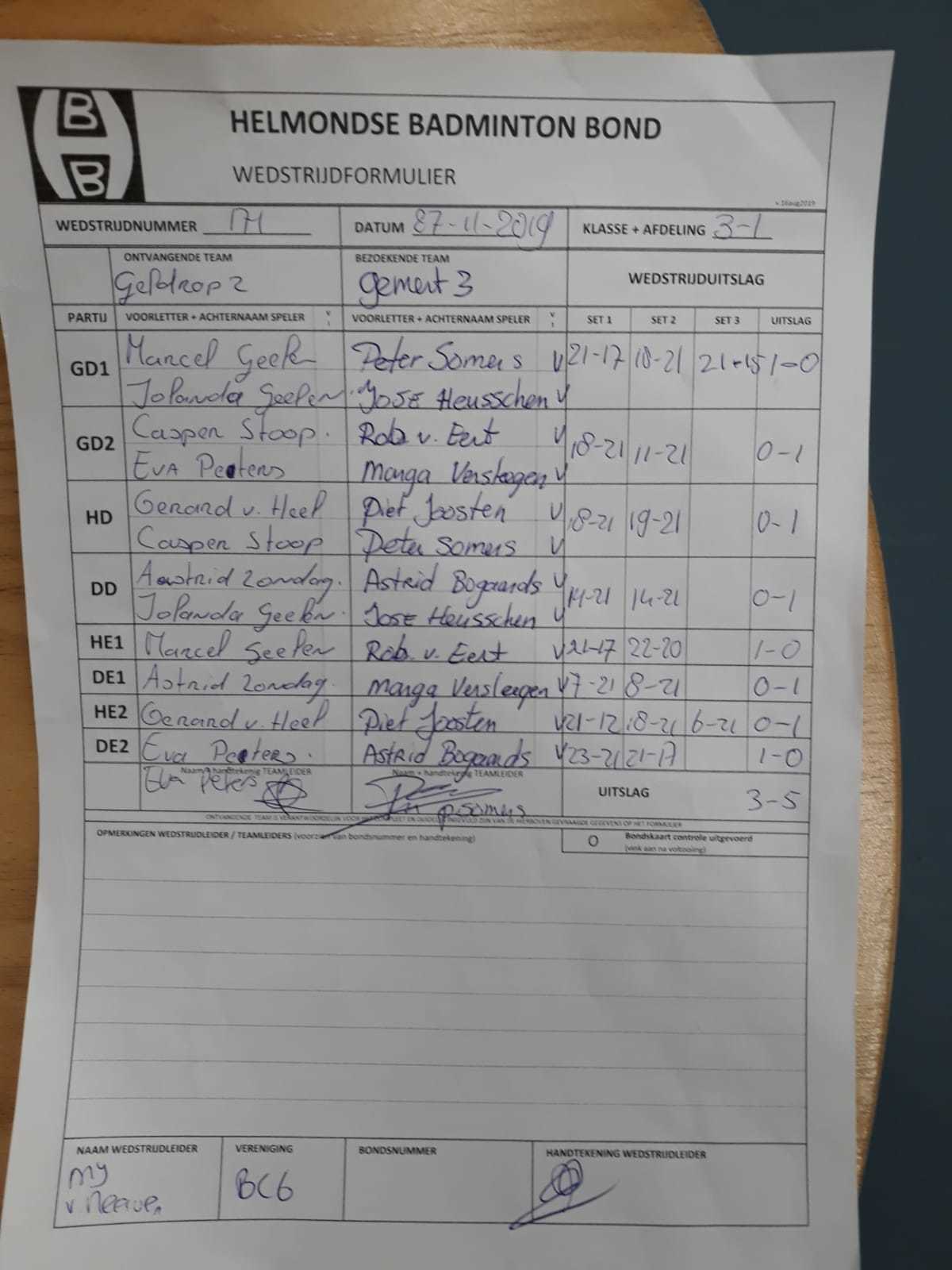 | 171 | wo. 27-11-2019 | Geldrop 2 | - | Gemert 3 | 1 | 3 - 5 | |||