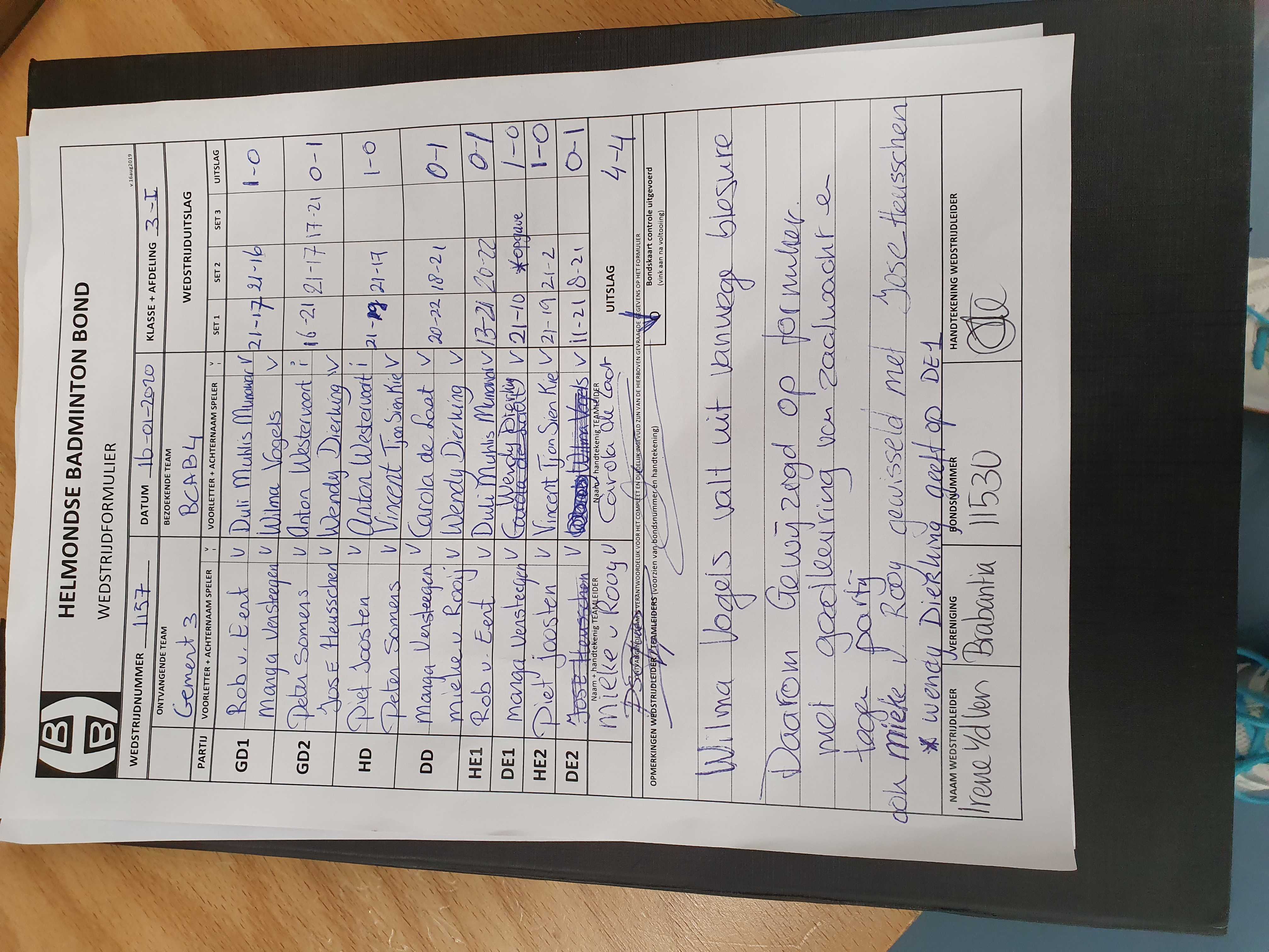 | 1157 | do. 16-01-2020 | Gemert 3 | - | BCAB 4 | 14 | 4 - 4 | |||