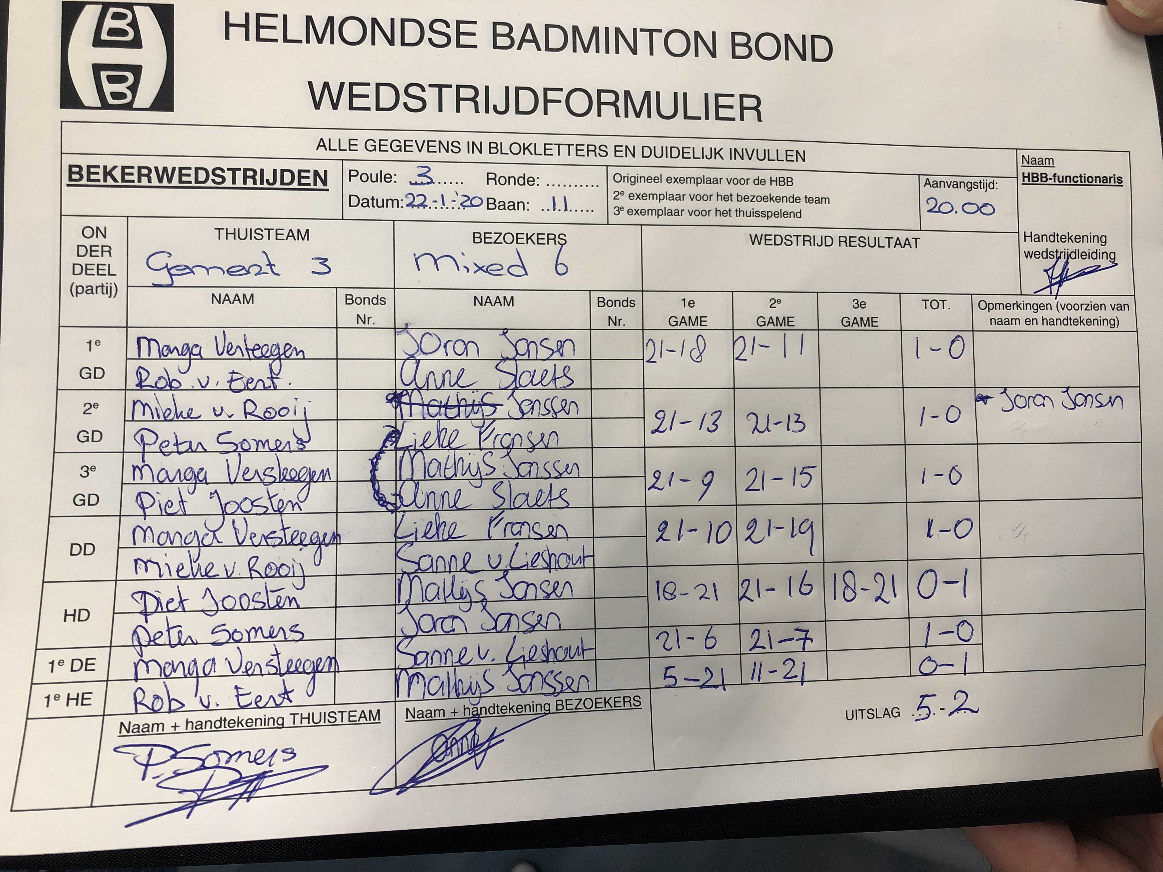 | 3053 | wo. 22-01-2020 | Gemert 3 | - | Mixed 6 | 11 | 4 - 3 | |||