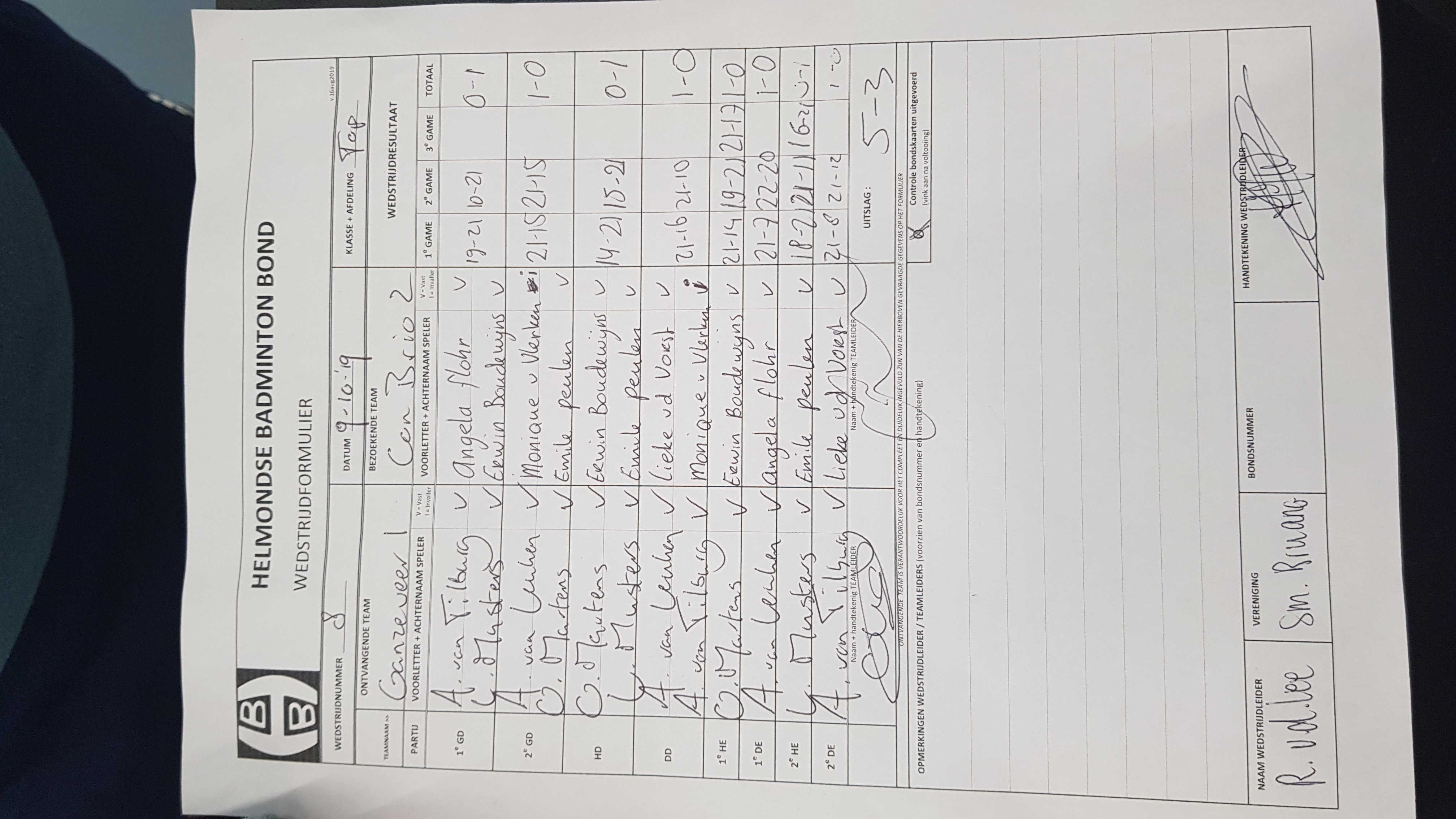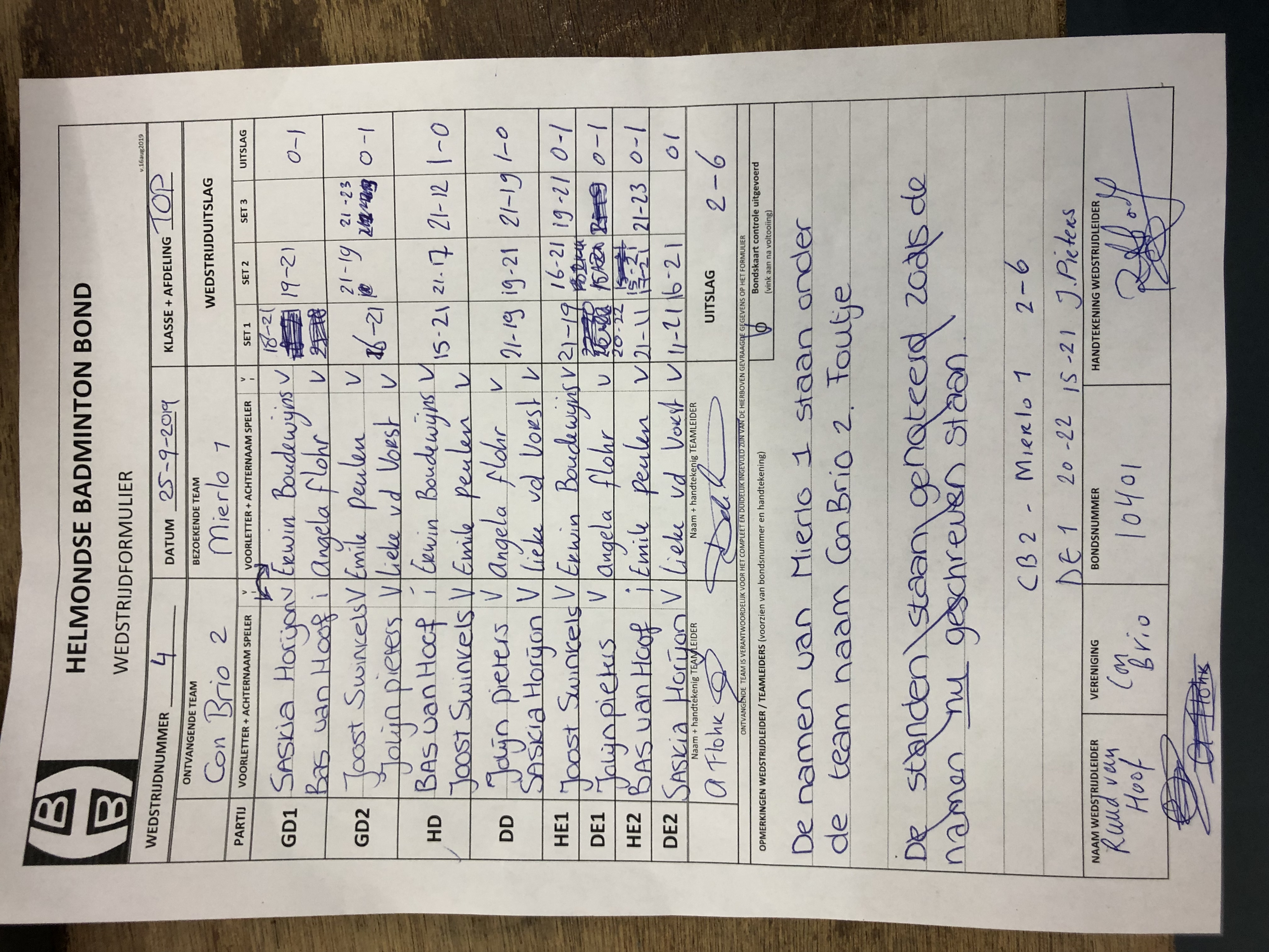 | 4 | wo. 25-09-2019 | Con Brio 2 | - | Mierlo 1 | 15 | 2 - 6 | |||