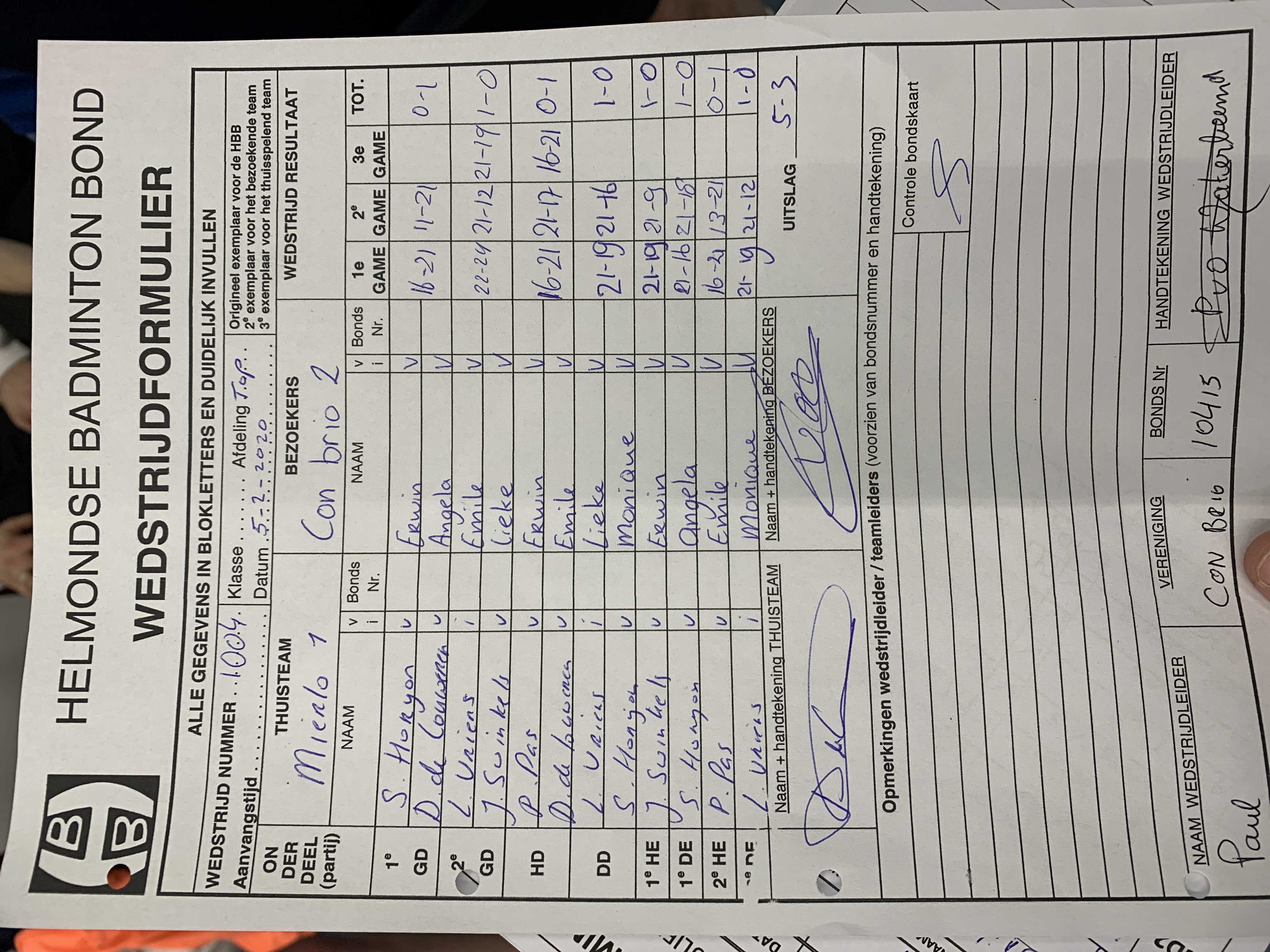 | 1004 | wo. 05-02-2020 | Mierlo 1 | - | Con Brio 2 | 15 | 5 - 3 | |||
