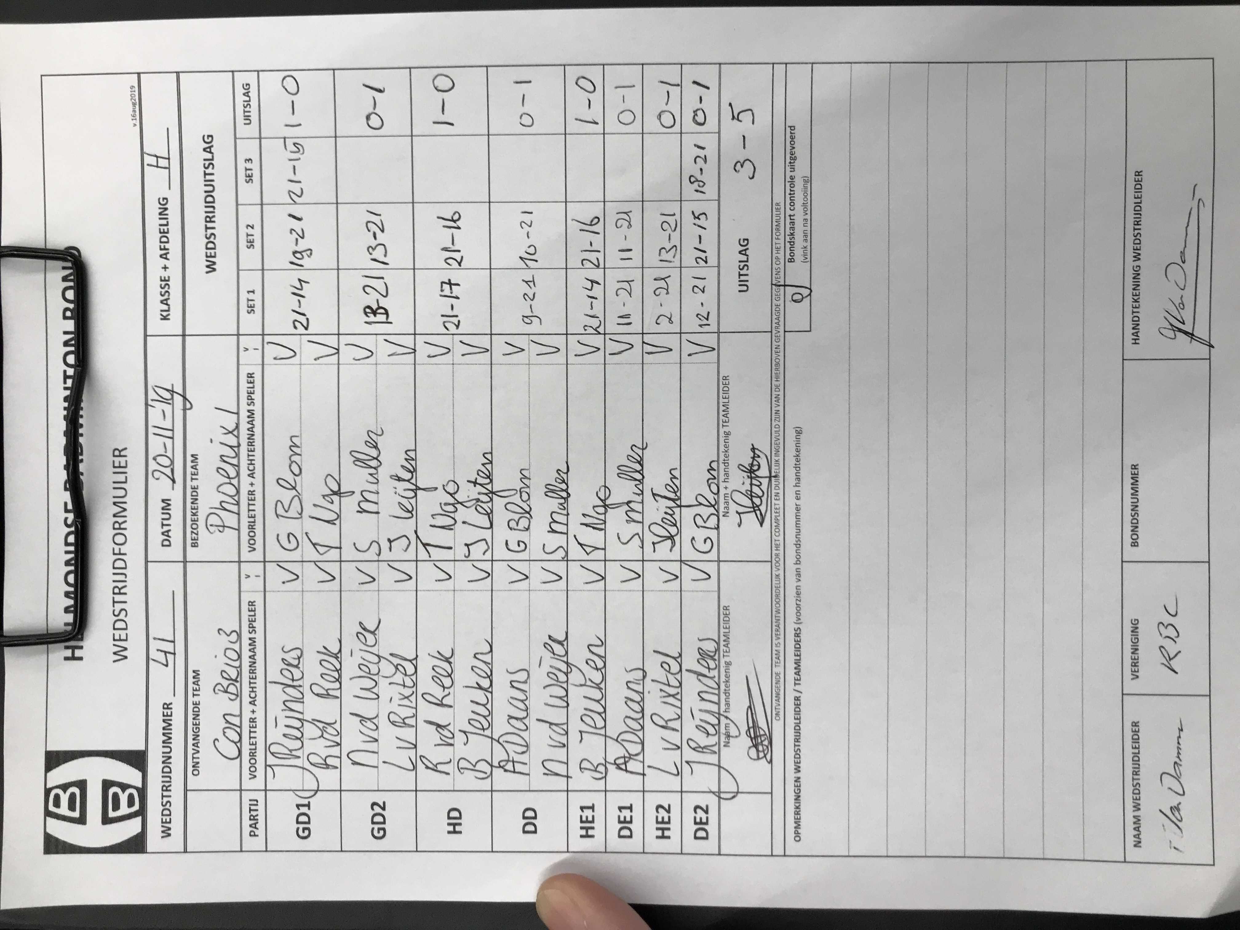 | 41 | wo. 20-11-2019 | Con Brio 3 | - | Phoenix 1 | 11 | 3 - 5 | |||