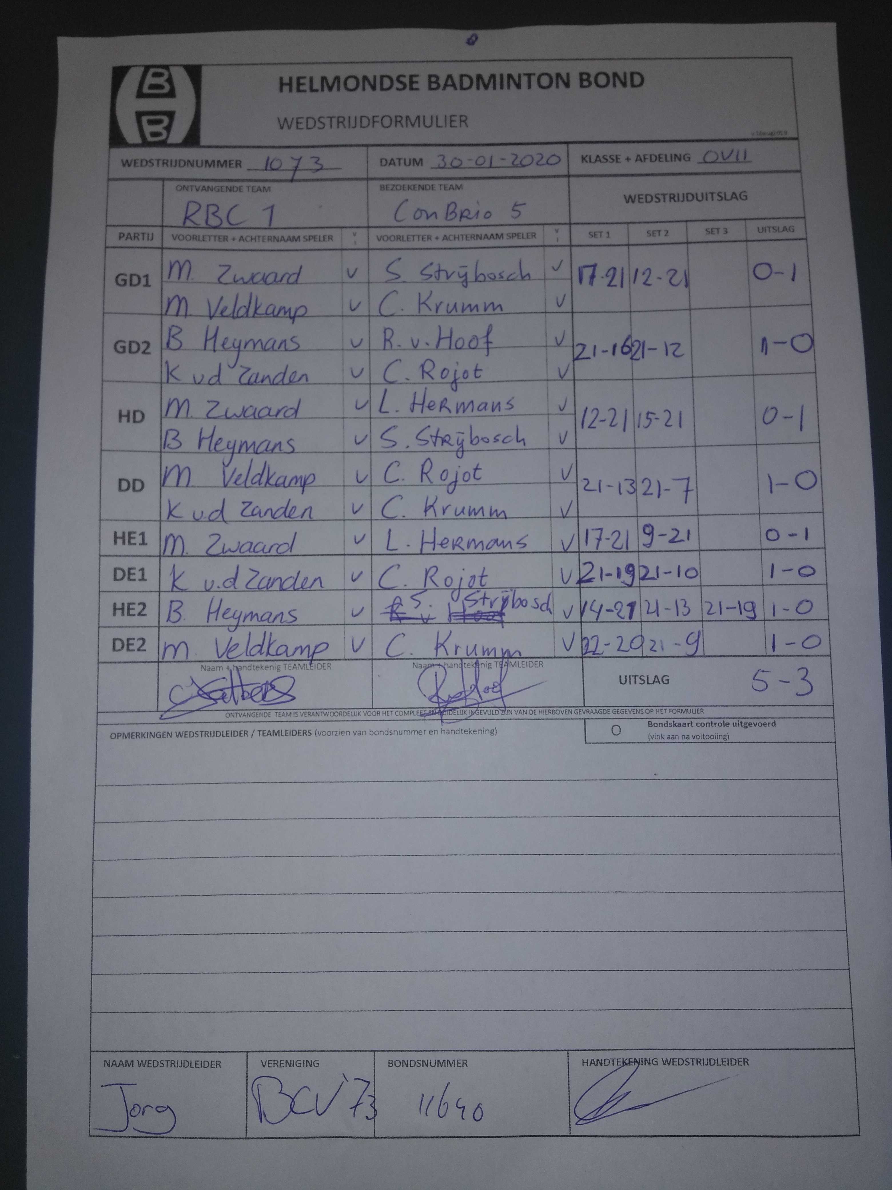 | 1069 | wo. 18-12-2019 | Brabantia 2 | - | Con Brio 5 | 15 | 6 - 2 | |||