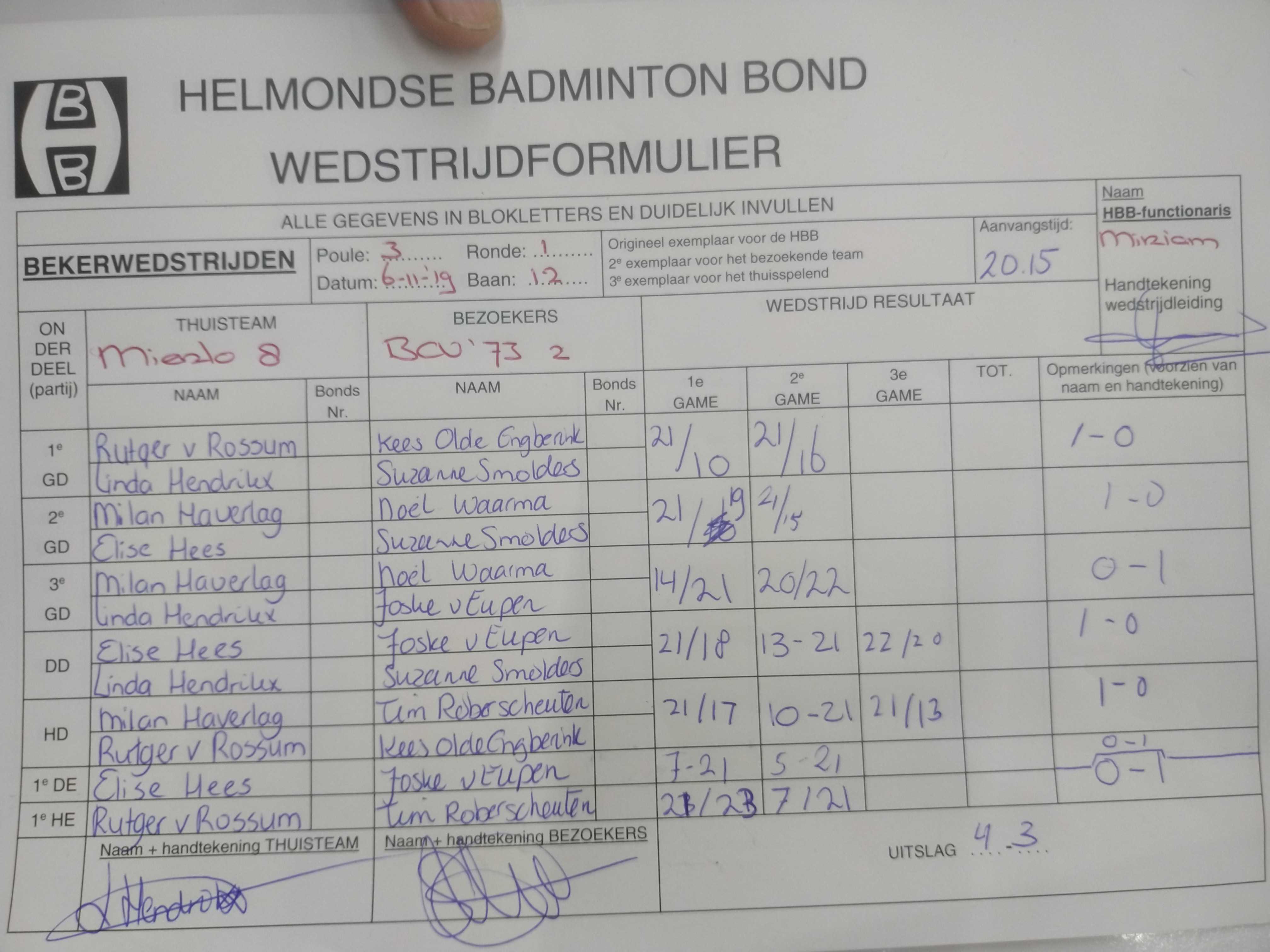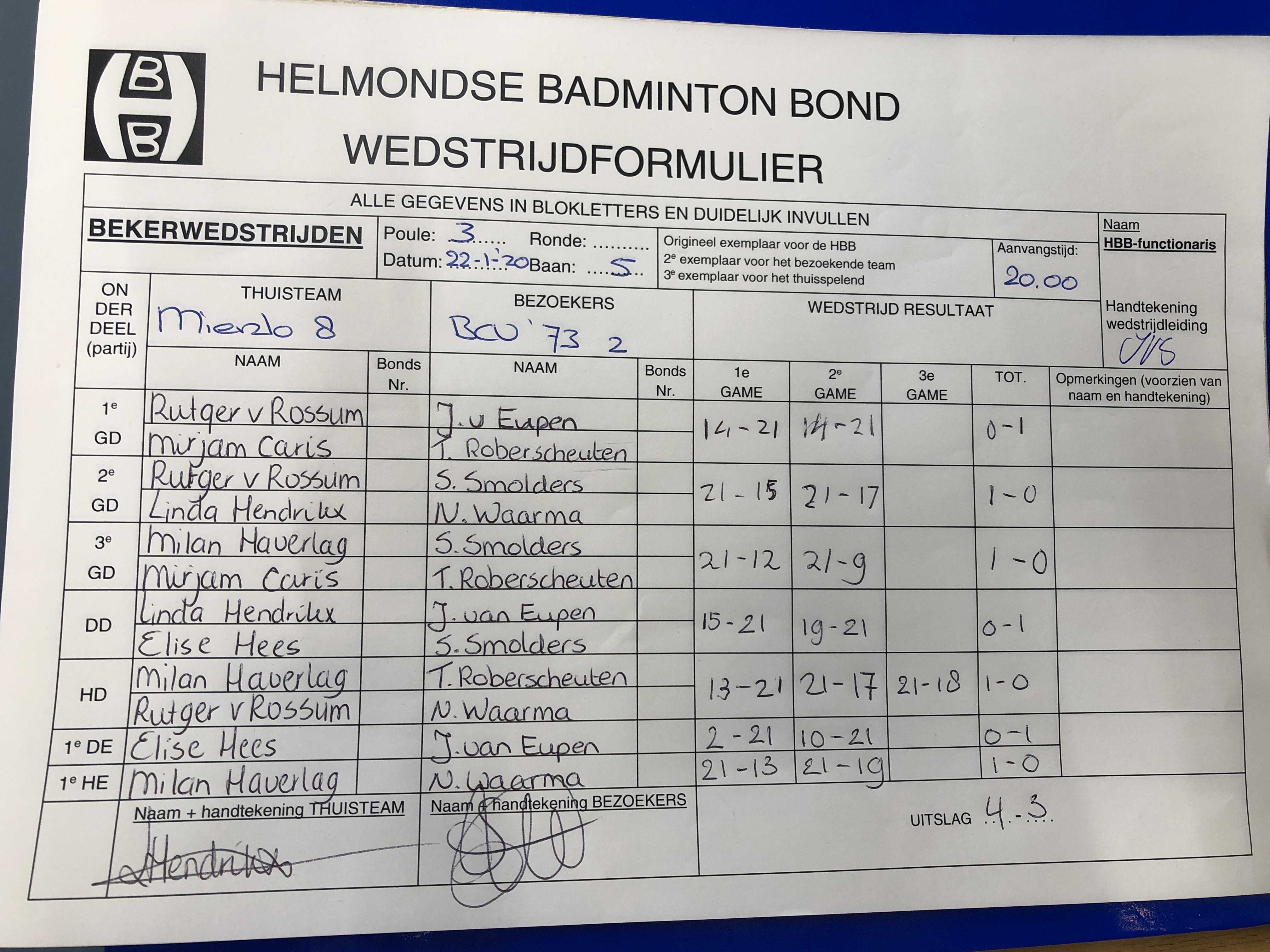 | 3030 | wo. 06-11-2019 | Mierlo 8 | - | BCV '73 2 | 12 | 4 - 3 | |||