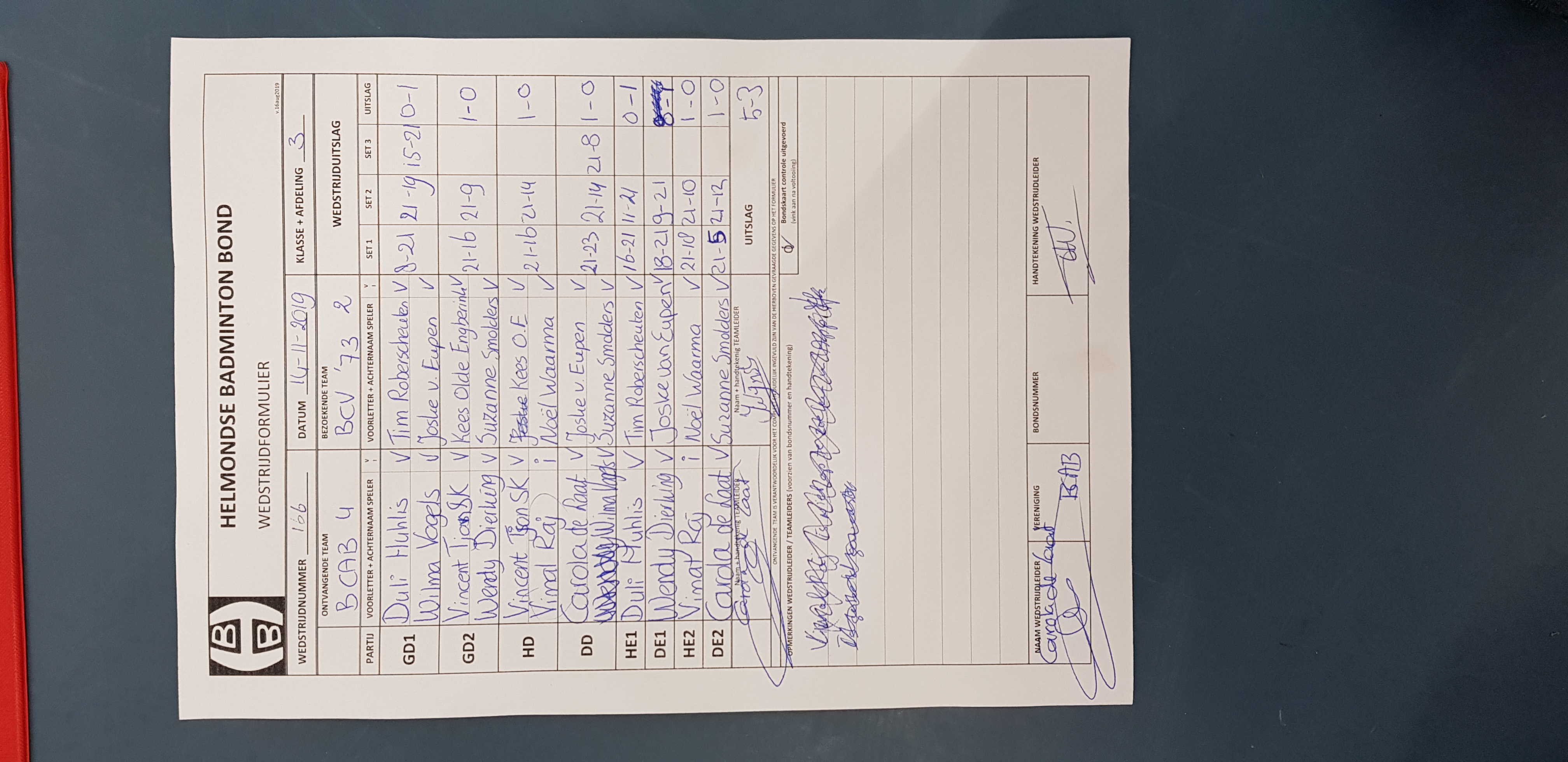 | 166 | do. 14-11-2019 | BCAB 4 | - | BCV '73 2 | 1 | 5 - 3 | |||