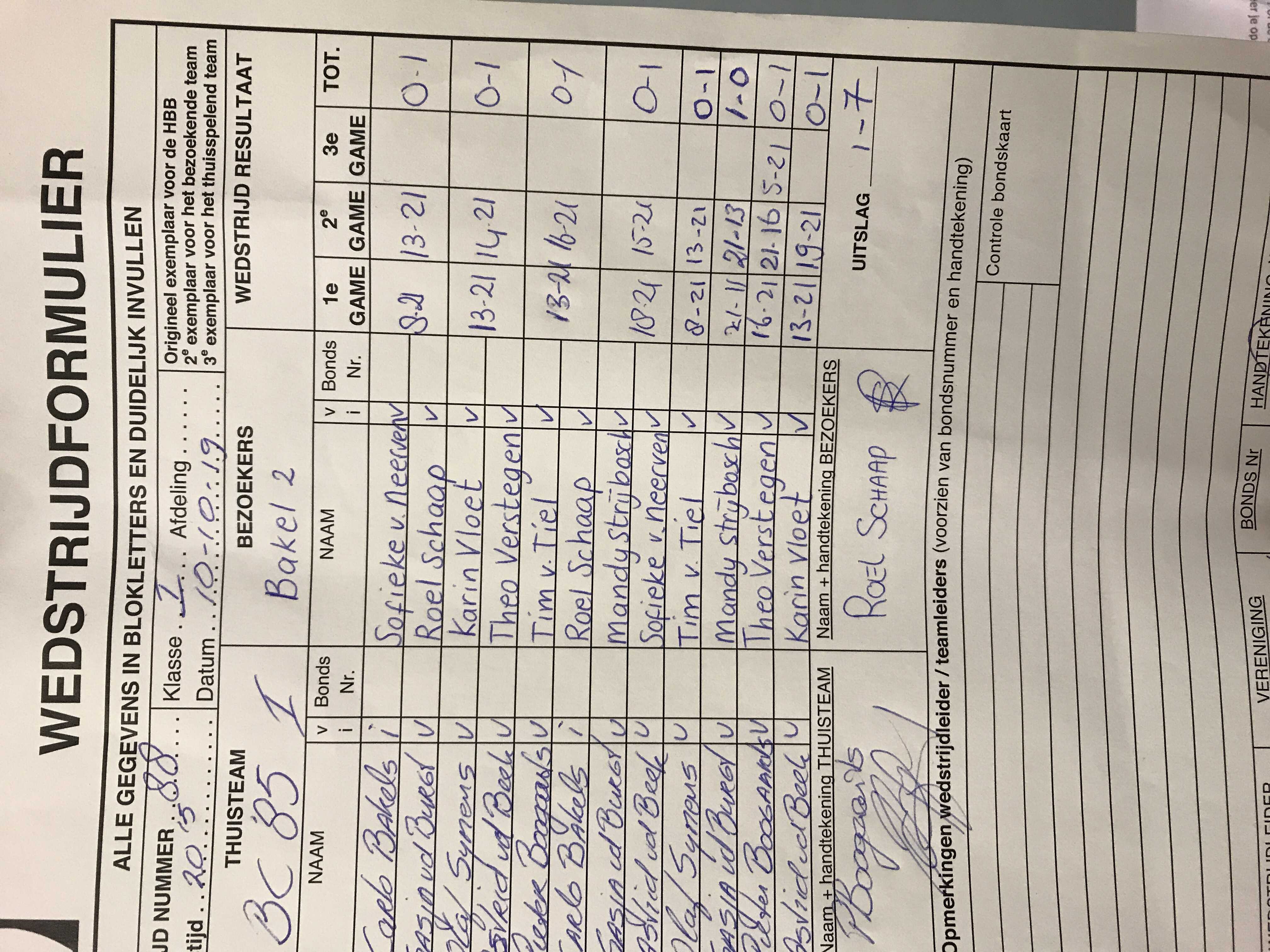 | 88 | do. 10-10-2019 | BC '85 1 | - | Bakel 2 | 15 | 1 - 7 | |||