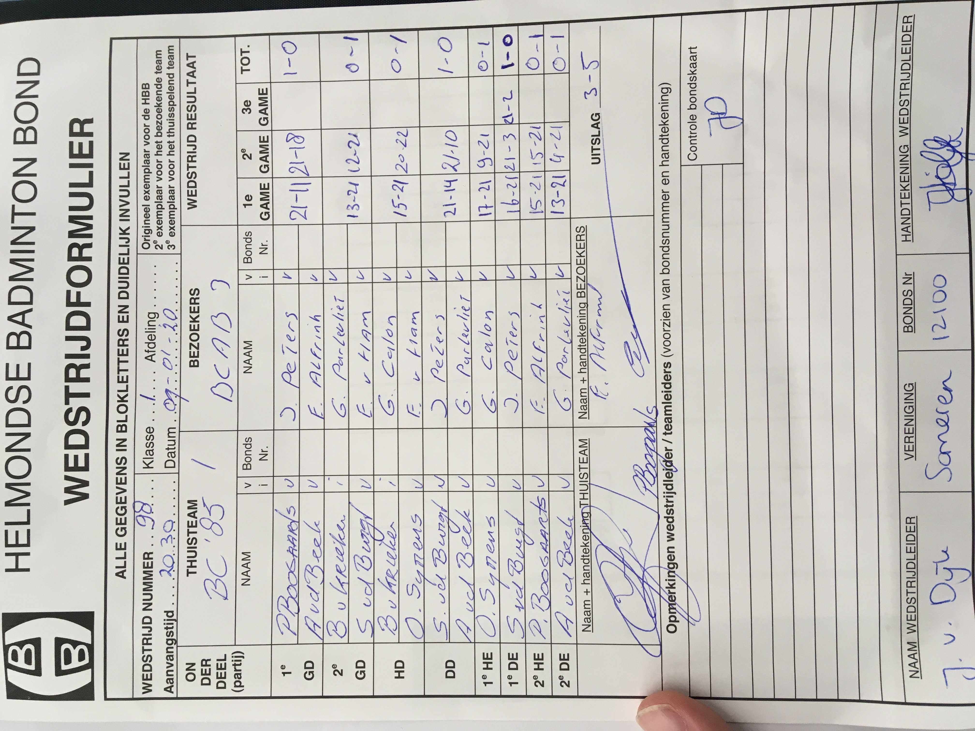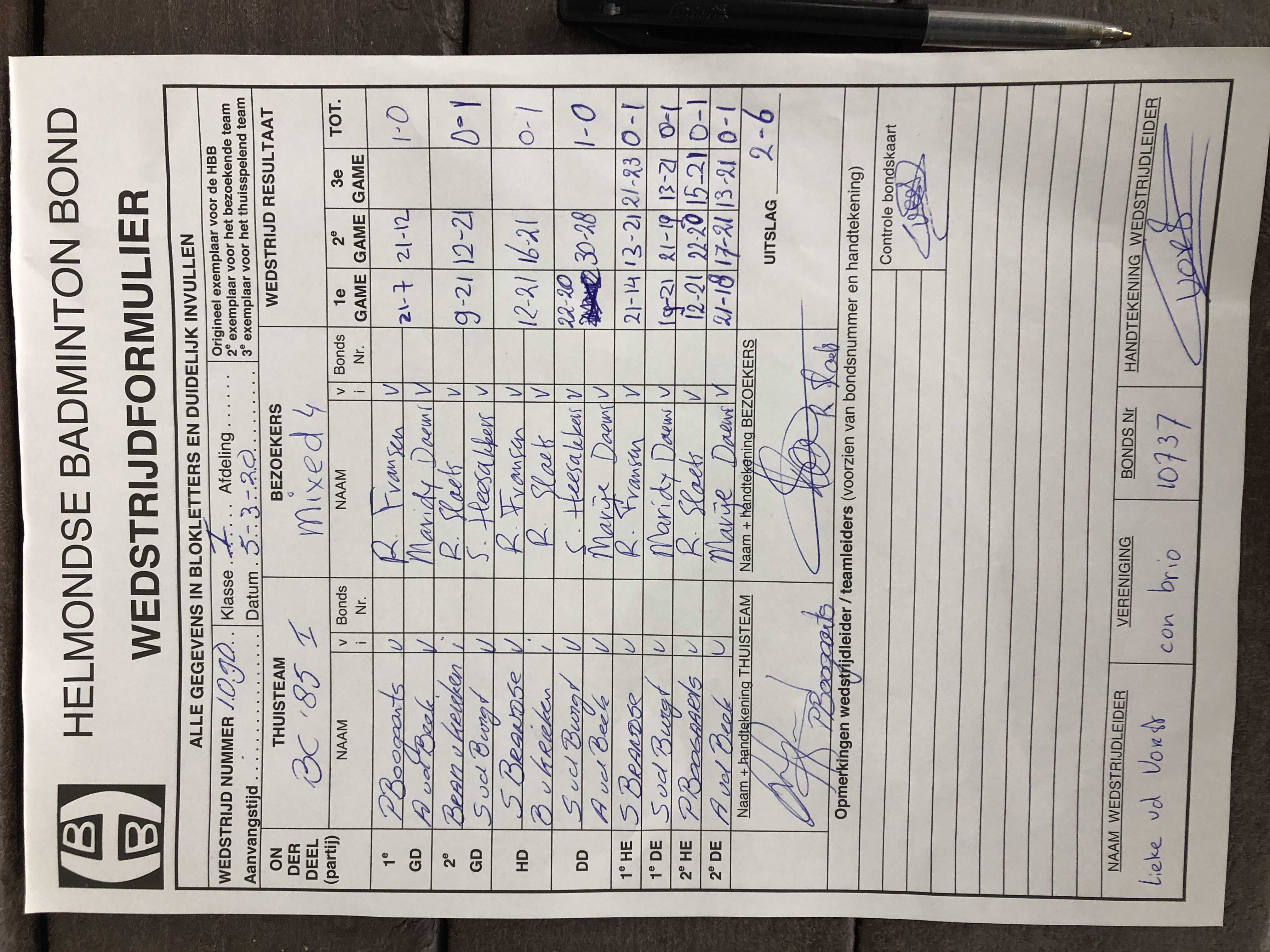 | 1085 | do. 06-02-2020 | BC '85 1 | - | Smashing Bruang 2 | 12 | 5 - 3 | |||