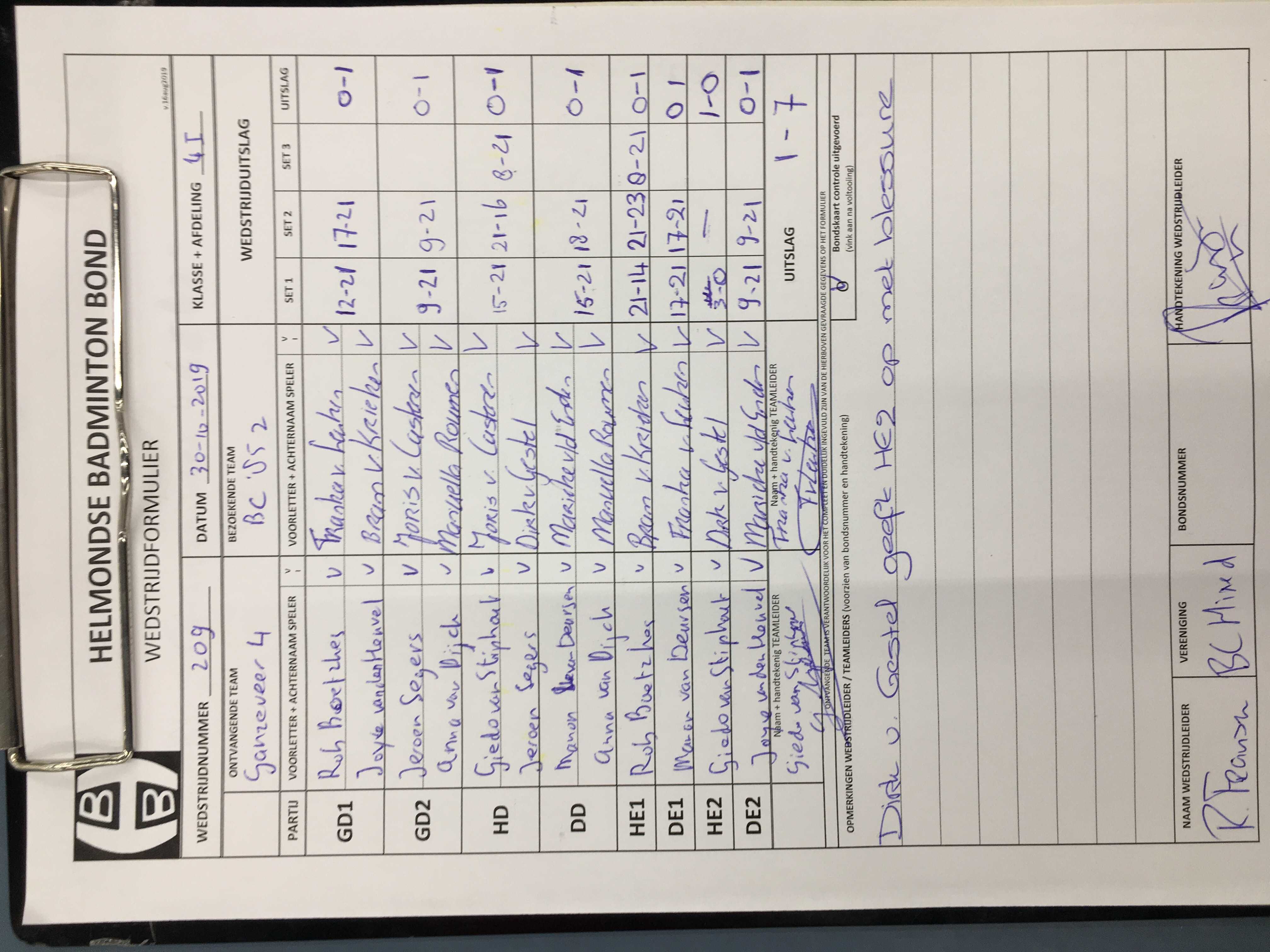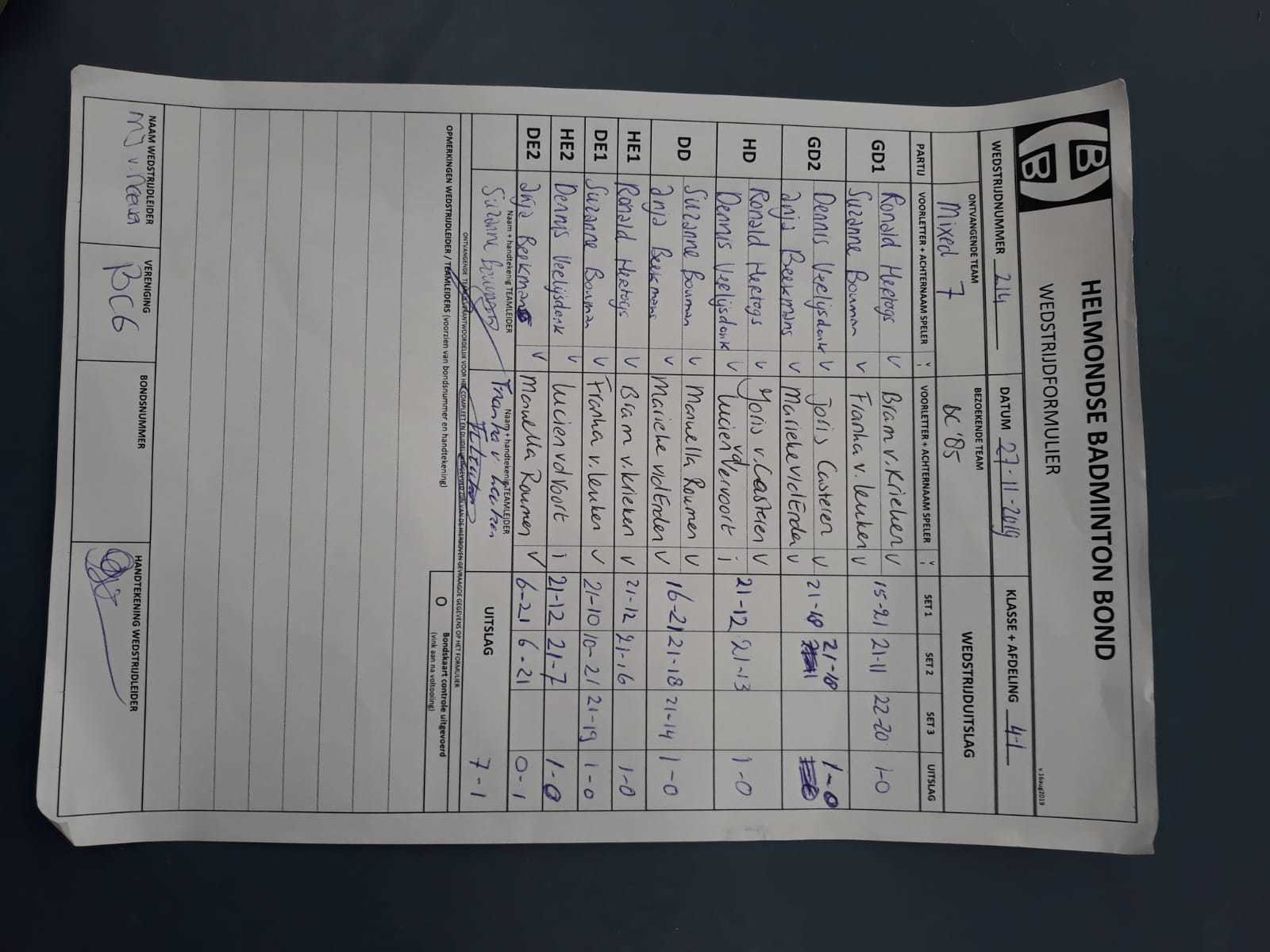 | 214 | wo. 27-11-2019 | Mixed 7 | - | BC '85 2 | 13 | 7 - 1 | |||