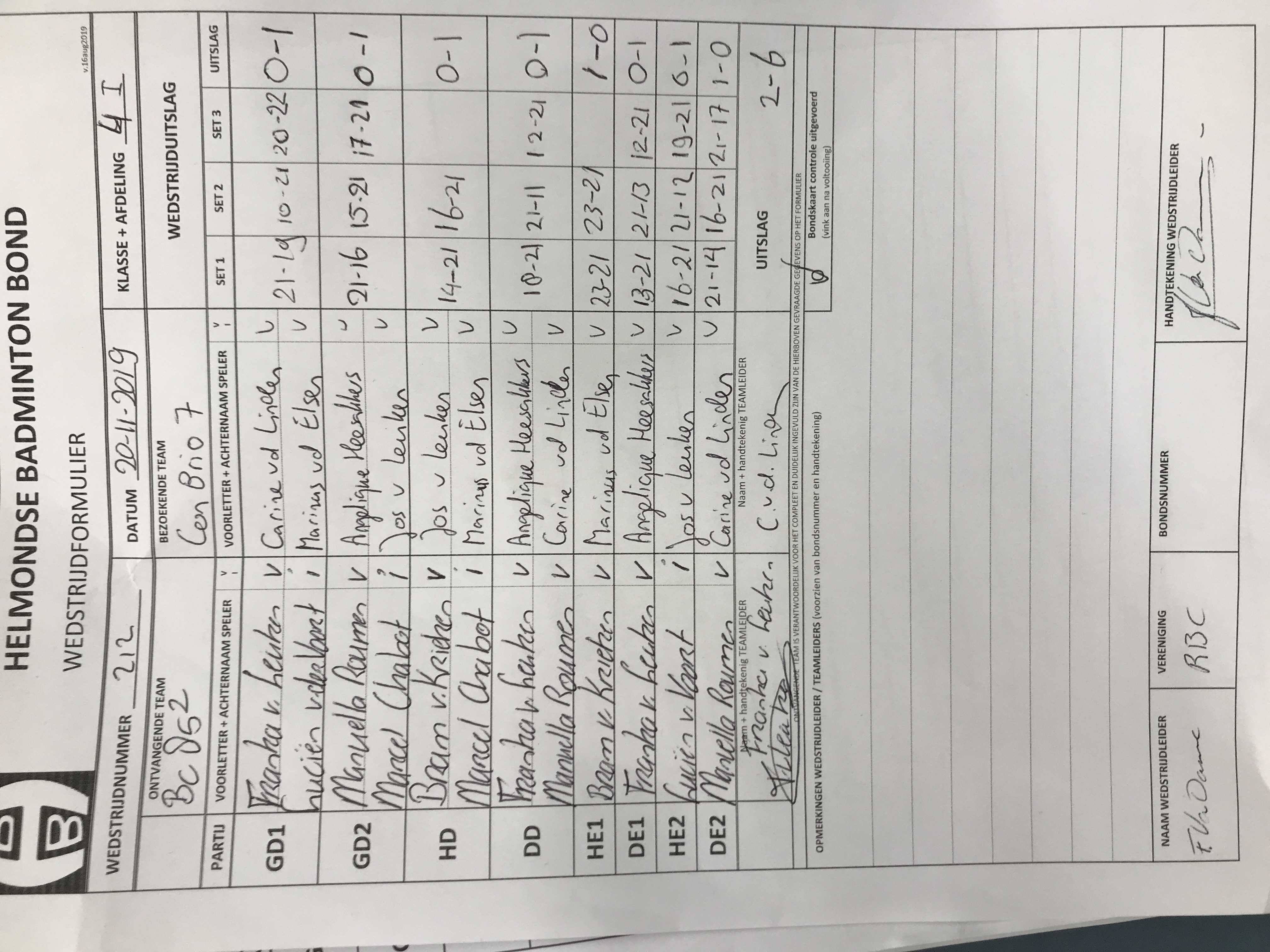 | 212 | wo. 20-11-2019 | BC '85 2 | - | Con Brio 7 | 4 | 2 - 6 | |||