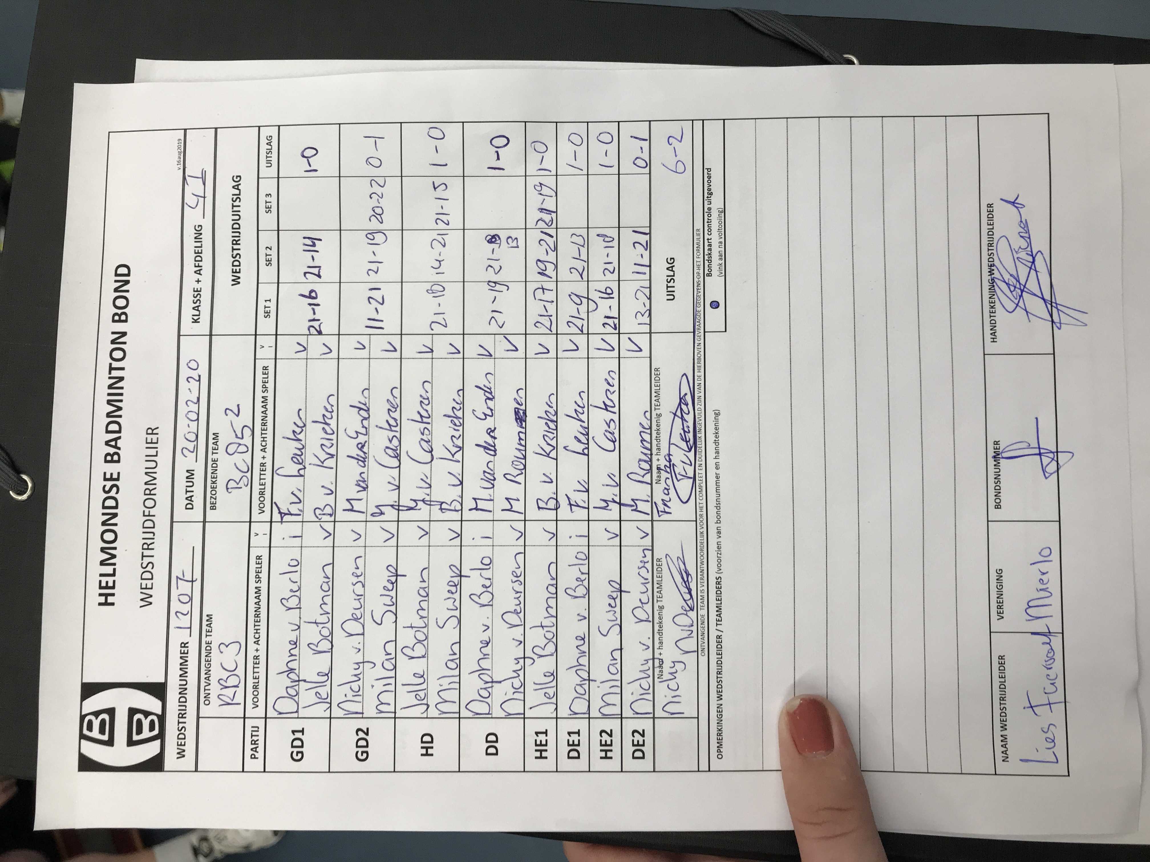 | 1207 | do. 20-02-2020 | RBC 3 | - | BC '85 2 | 13 | 3 - 5 | |||