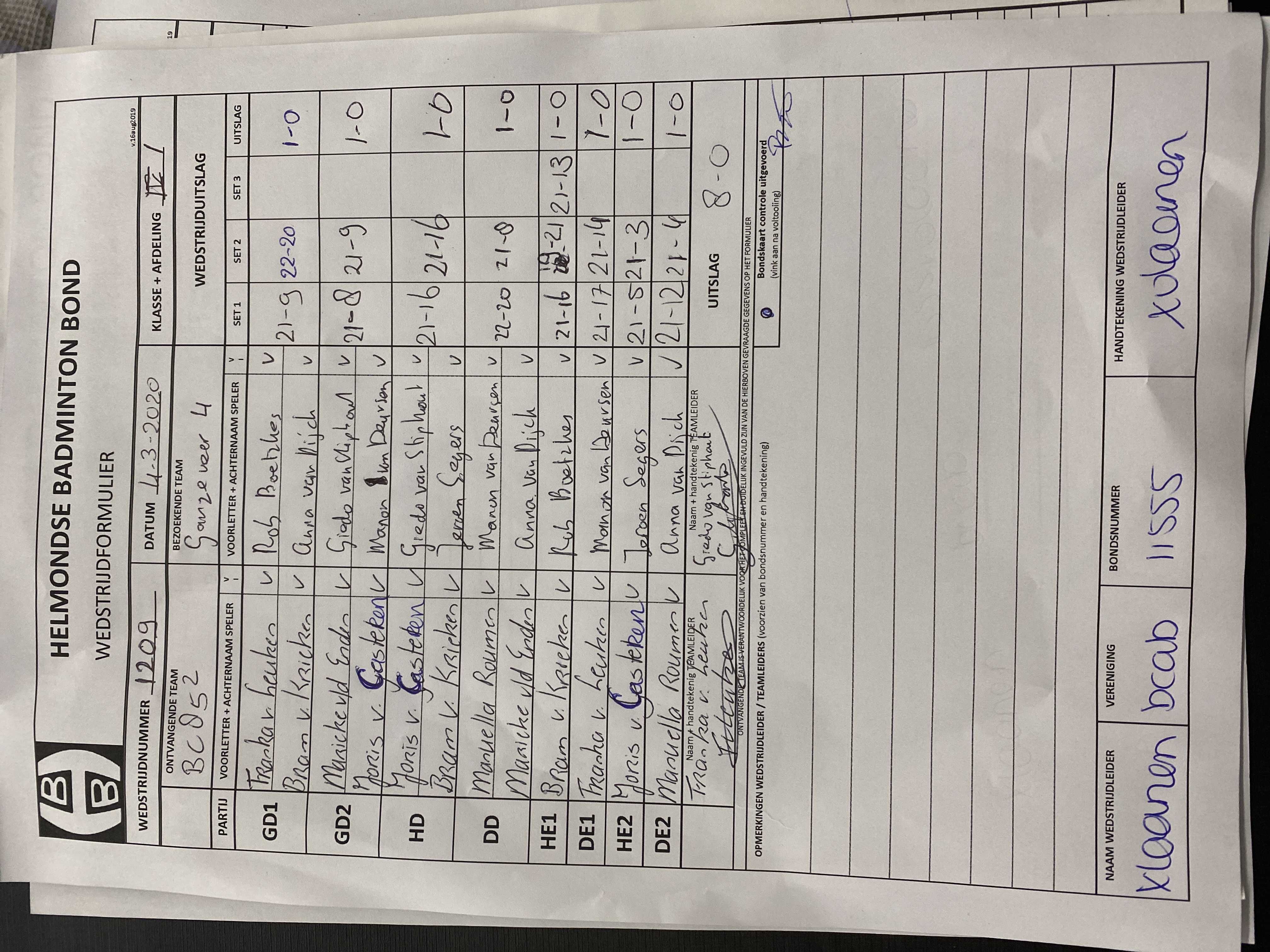 | 1209 | wo. 04-03-2020 | BC '85 2 | - | Ganzeveer 4 | 13 | 8 - 0 | |||