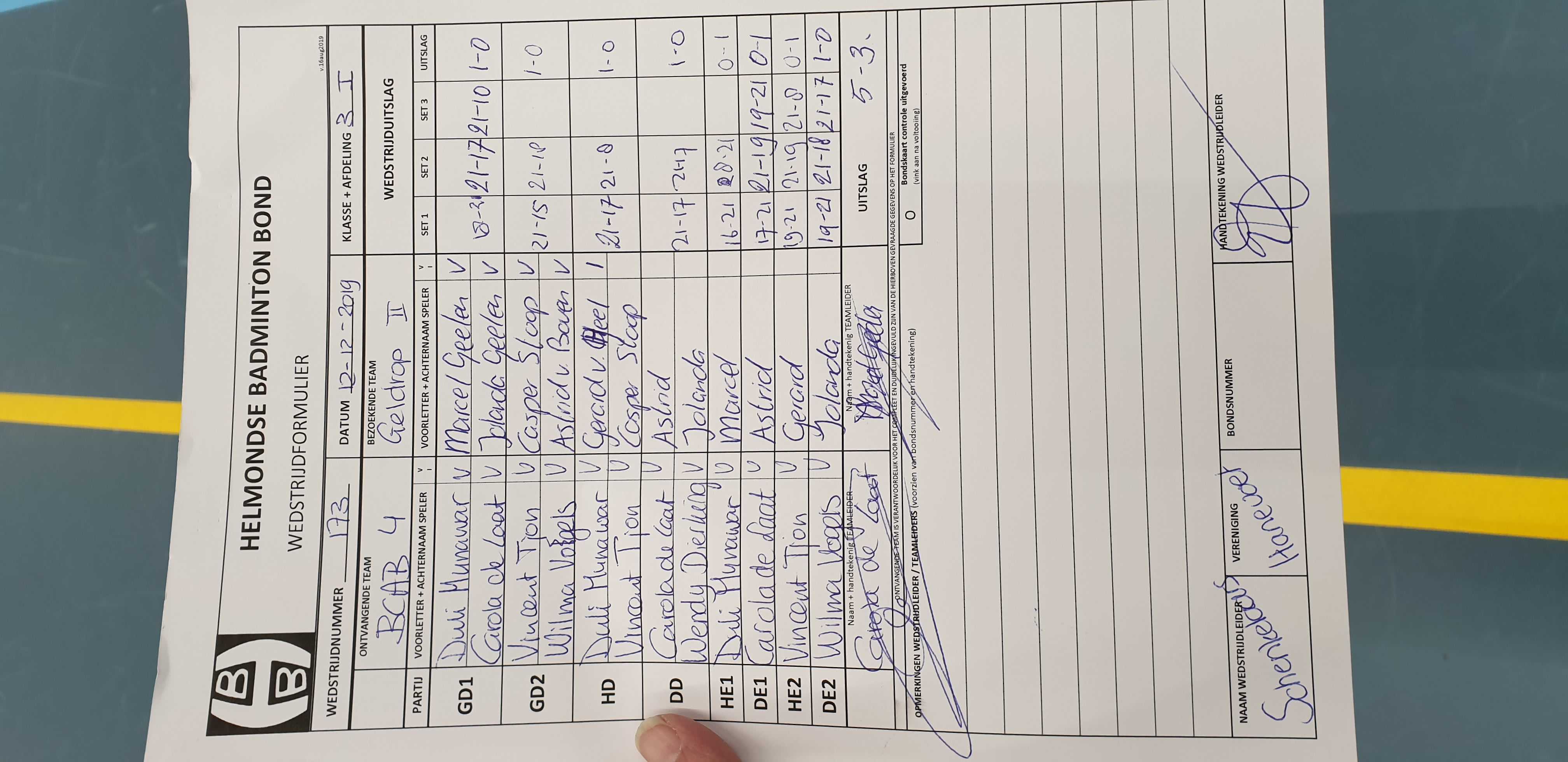 | 173 | do. 12-12-2019 | BCAB 4 | - | Geldrop 2 | 13 | 5 - 3 | |||