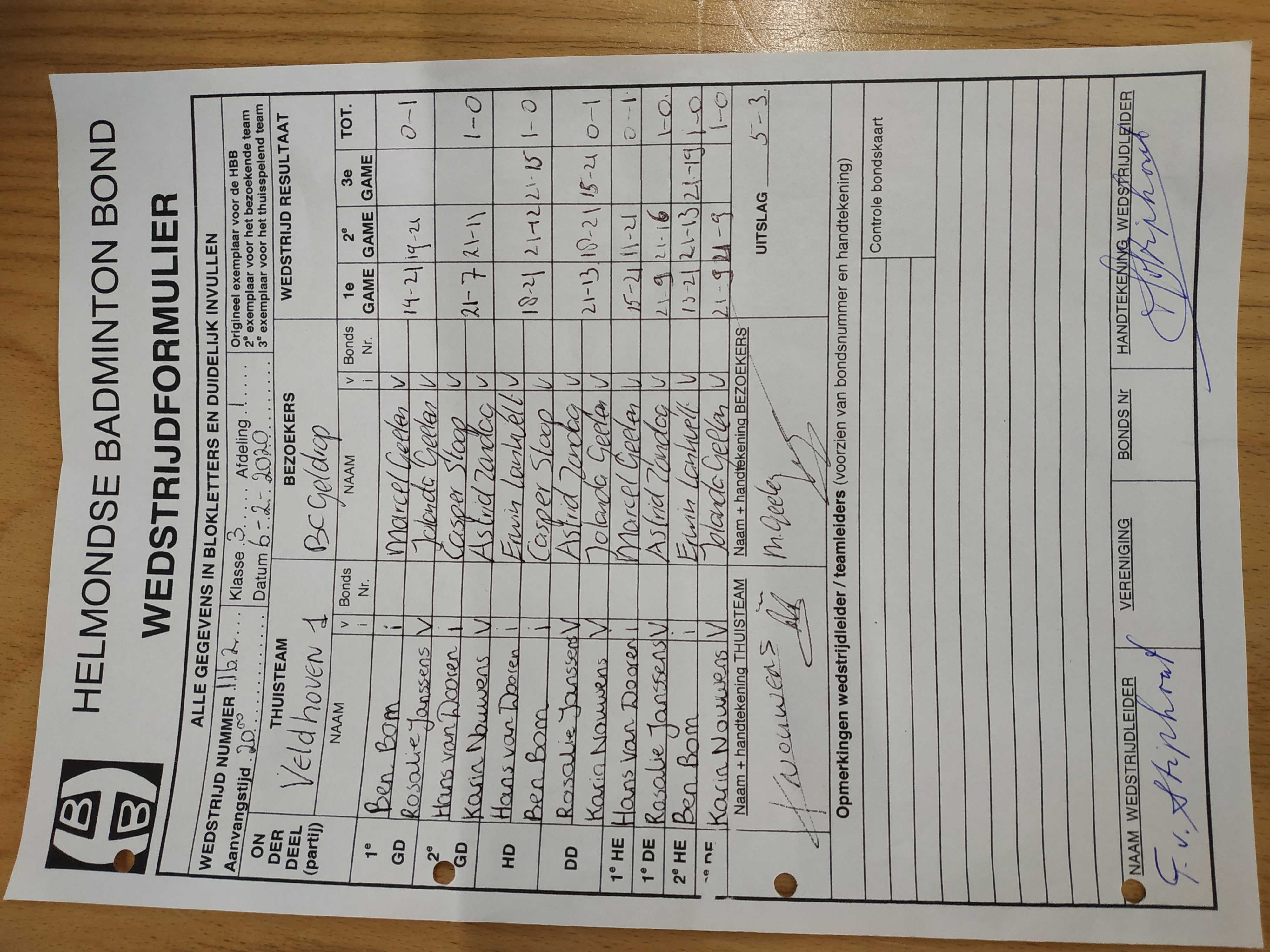 | 1162 | do. 06-02-2020 | Veldhoven 1 | - | Geldrop 2 | 14 | 3 - 5 | |||