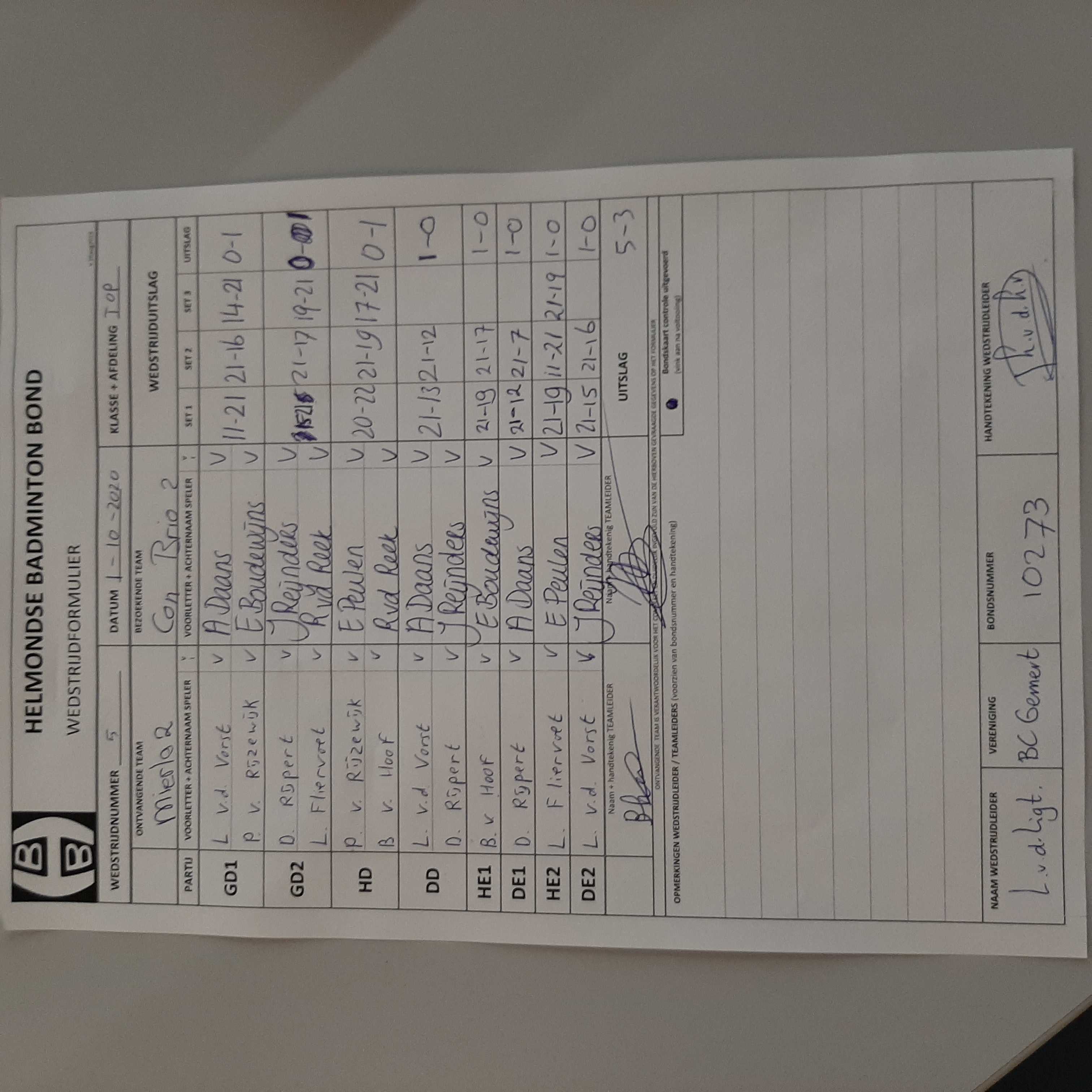 | 1007 | wo. 10-02-2021 | Mierlo 2 | - | Con Brio 1 | 1 | - | |||