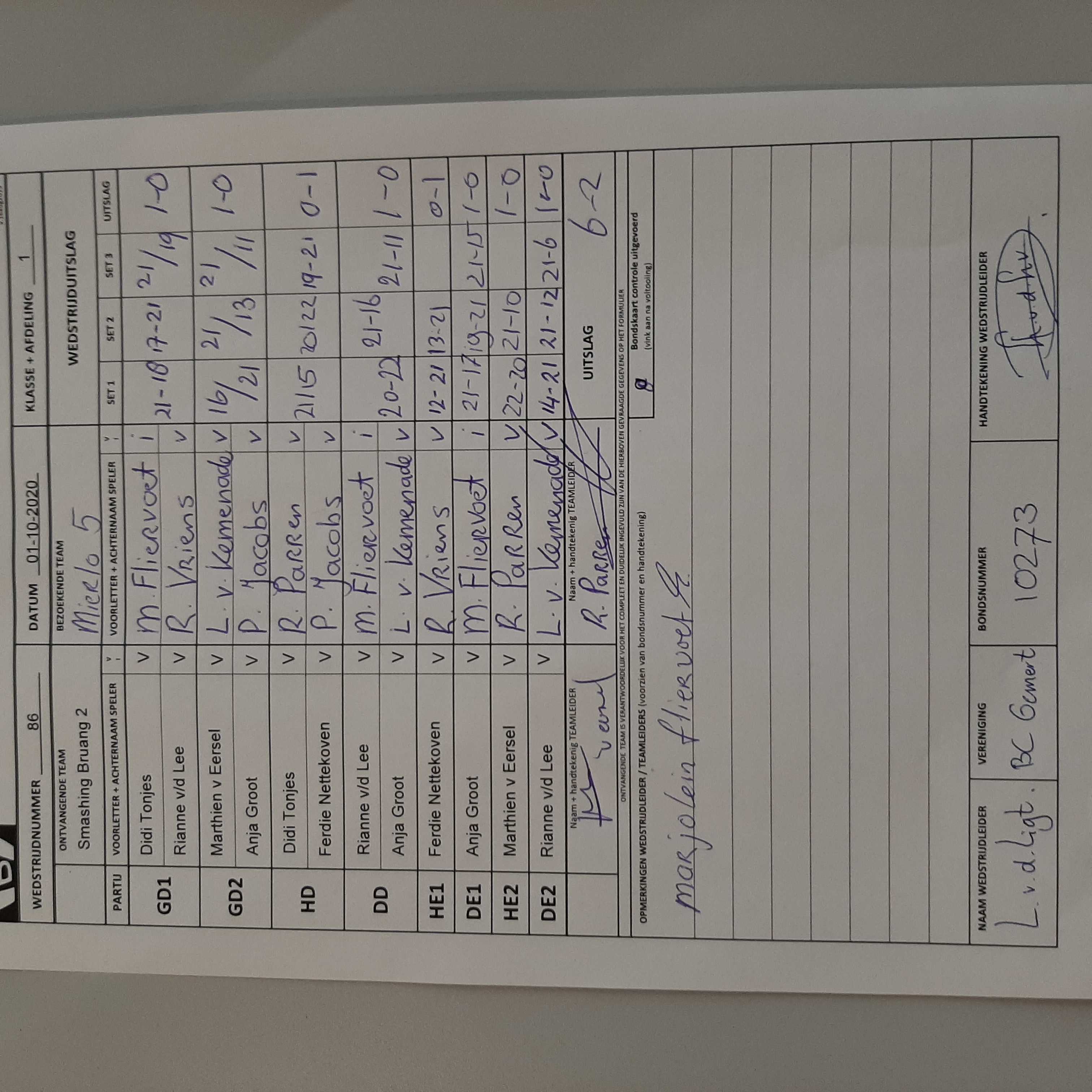 | 86 | do. 01-10-2020 | Smashing Bruang 2 | - | Mierlo 5 | 14 | 6 - 2 | |||