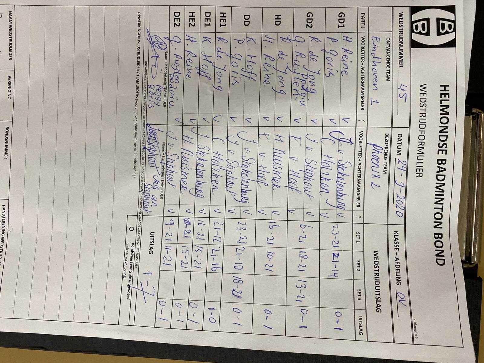 | 45 | do. 24-09-2020 | Eindhoven 1 | - | Phoenix 2 | 15 | 1 - 7 | |||