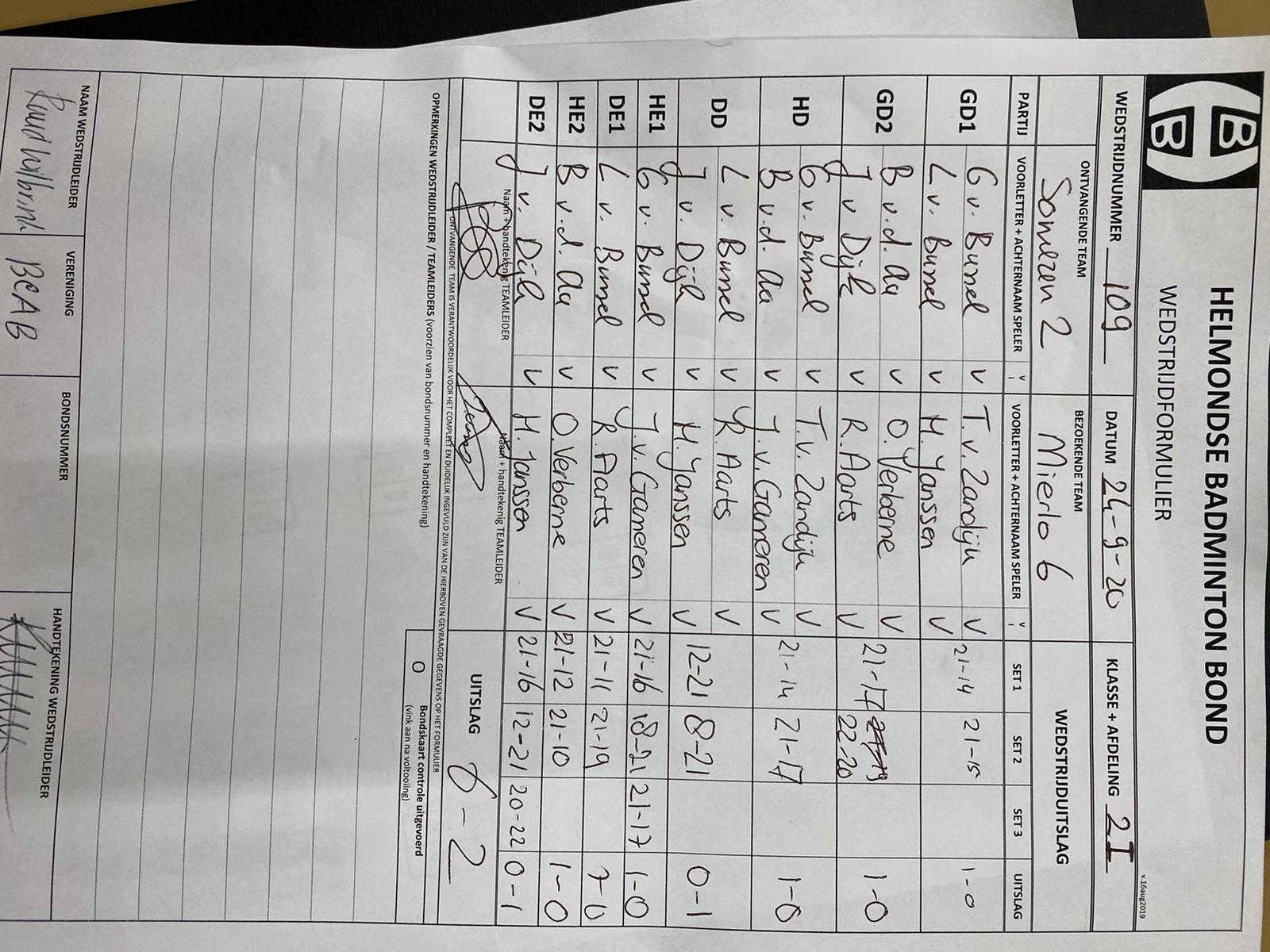 | 1109 | do. 21-01-2021 | Mierlo 6 | - | Someren 2 | 2 | - | |||