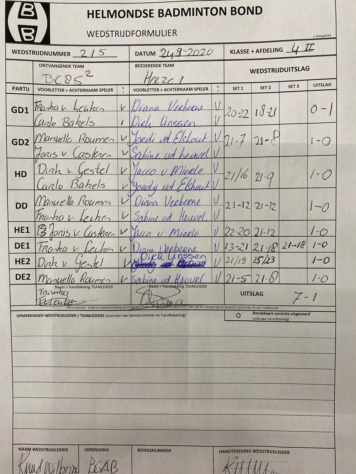 | 215 | do. 24-09-2020 | BC '85 2 | - | Heeze 1 | 4 | 7 - 1 | |||