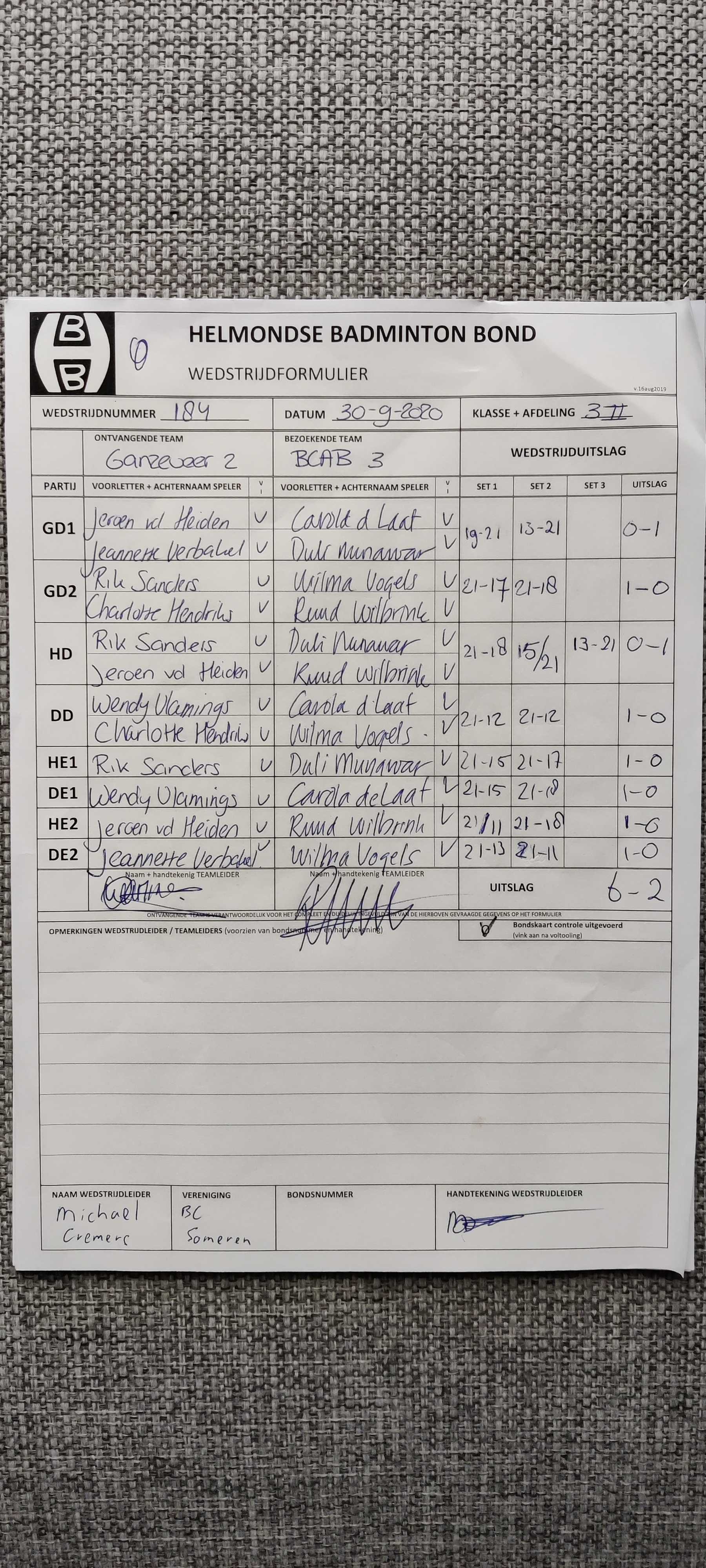 | 184 | wo. 30-09-2020 | Ganzeveer 2 | - | BCAB 3 | 11 | 6 - 2 | |||