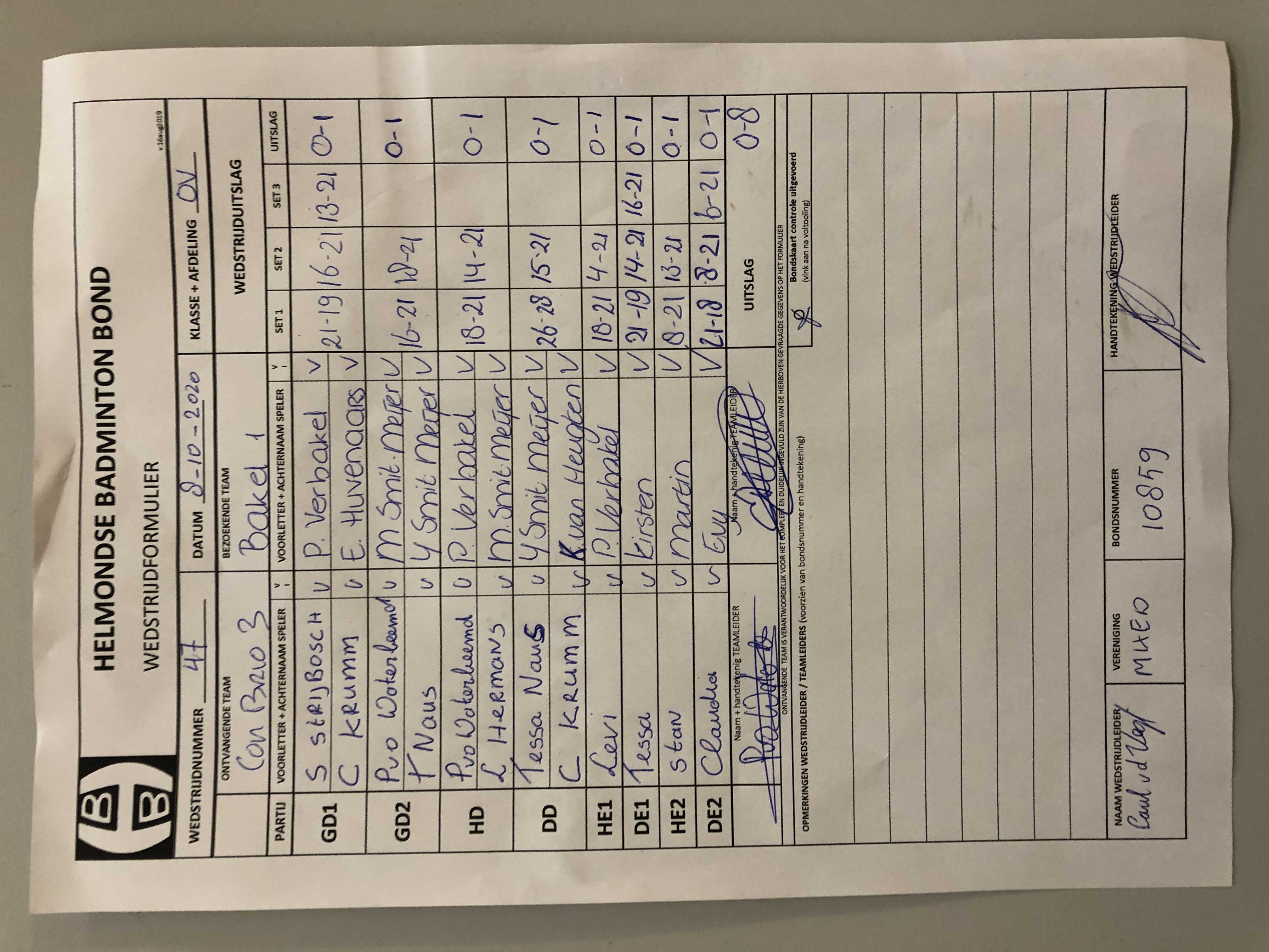 | 47 | do. 08-10-2020 | Con Brio 3 | - | Bakel 1 | 3 | 0 - 8 | |||