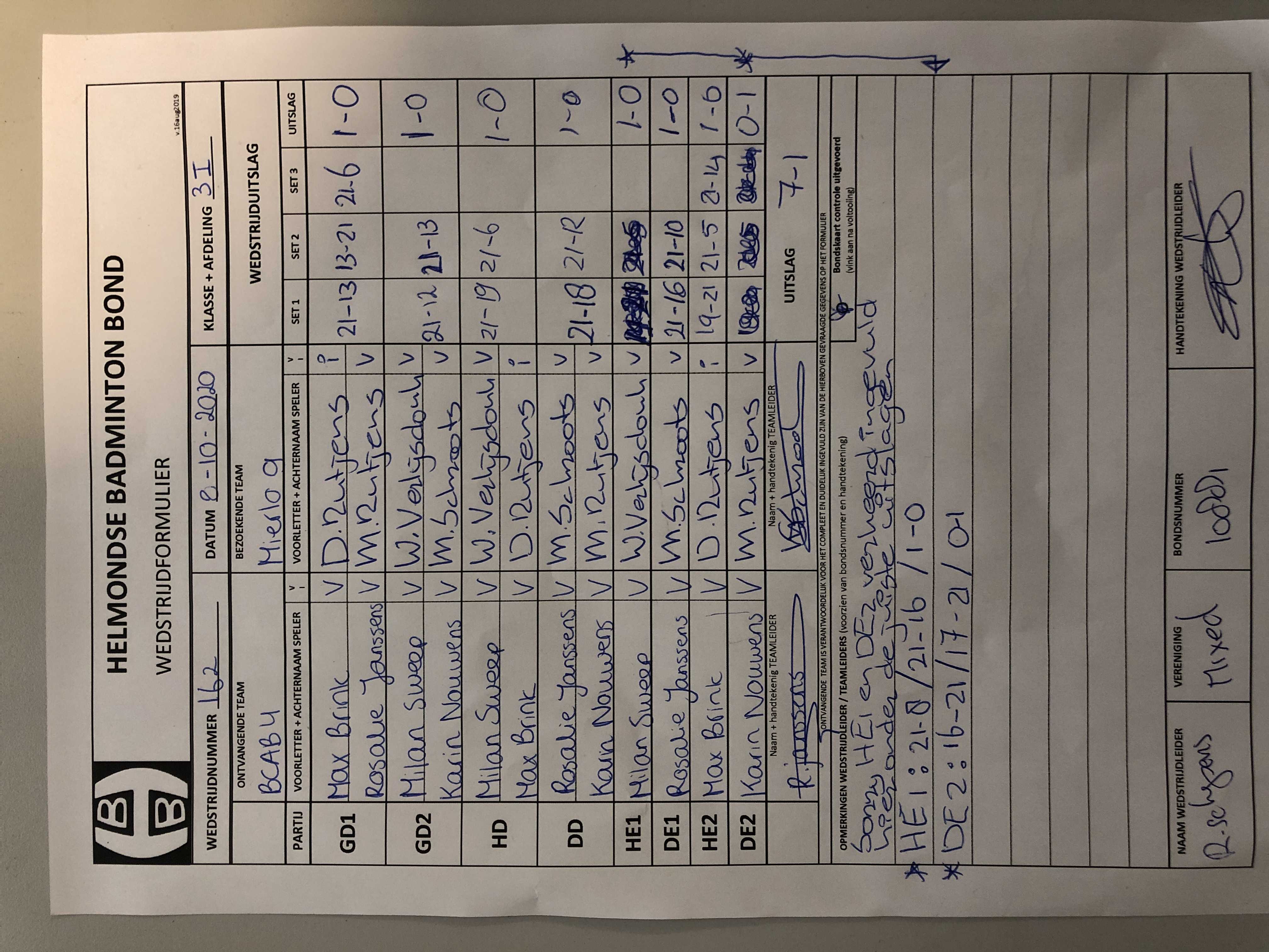 | 162 | do. 08-10-2020 | BCAB 4 | - | Mierlo 9 | 11 | 7 - 1 | |||
