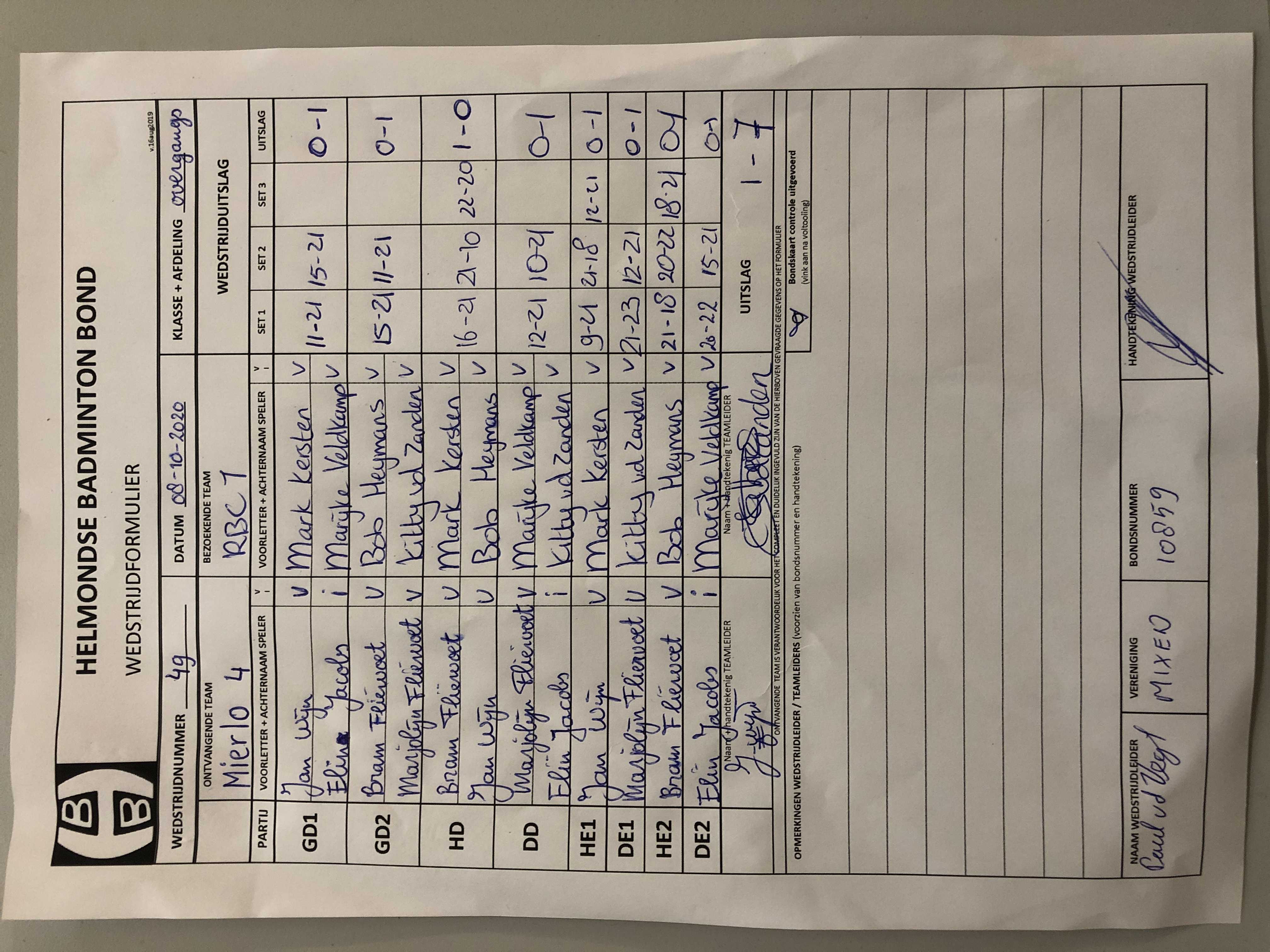 | 49 | do. 08-10-2020 | Mierlo 4 | - | RBC 1 | 4 | 1 - 7 | |||