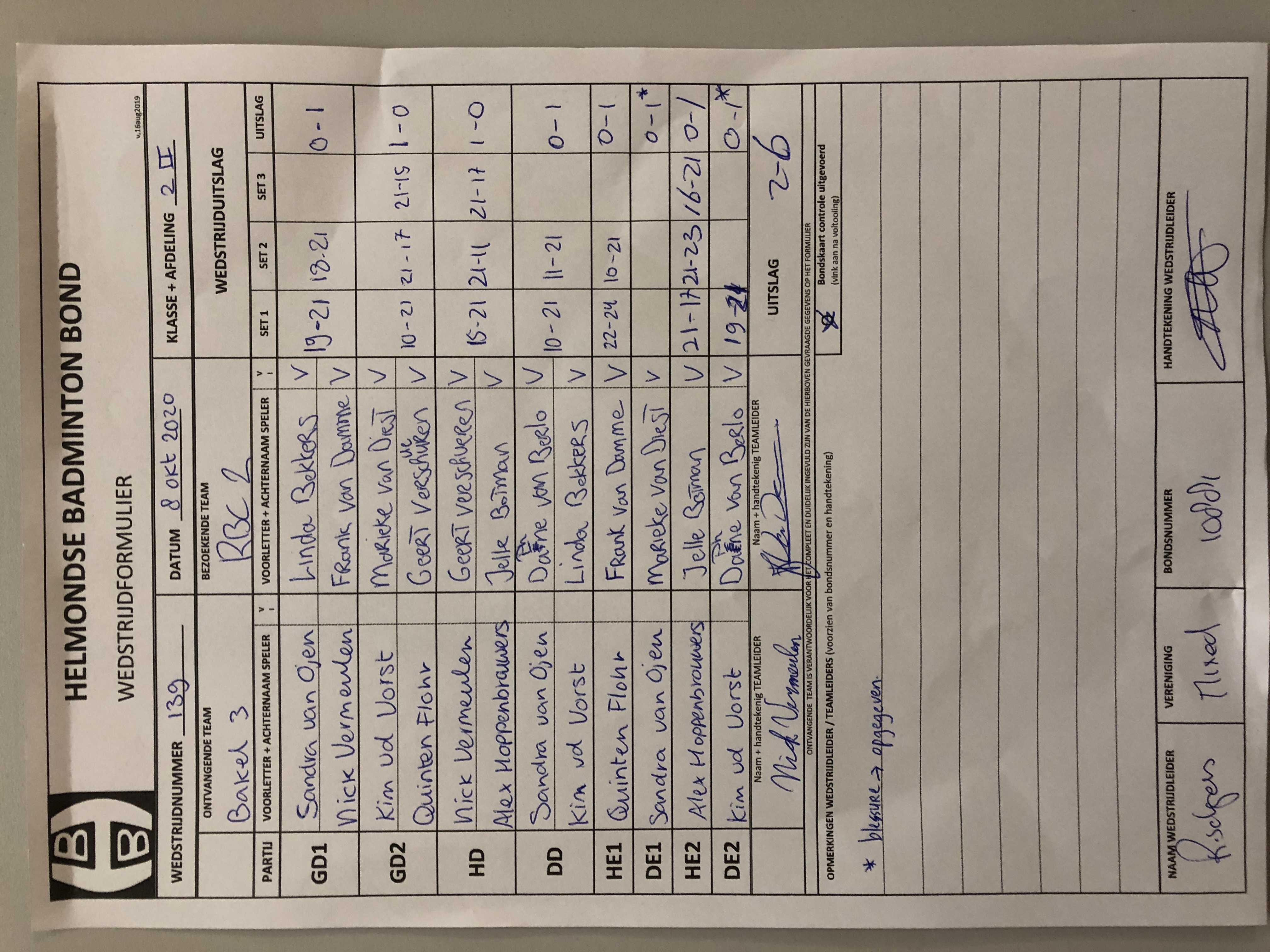 | 139 | do. 08-10-2020 | Bakel 3 | - | RBC 2 | 2 | 2 - 6 | |||