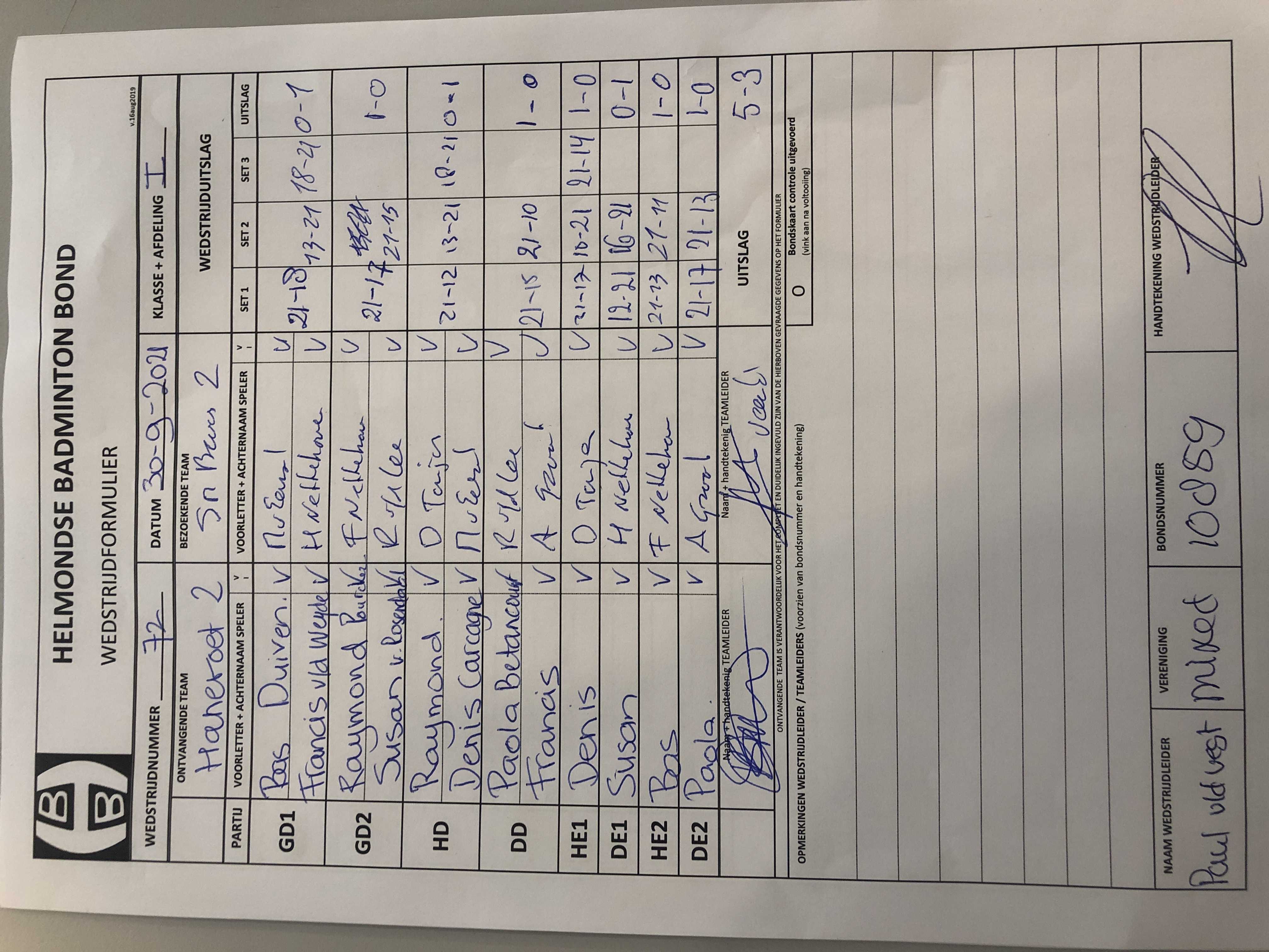 | 72 | do. 30-09-2021 | Hanevoet 2 | - | Smashing Bruang 2 | 3 | 5 - 3 | |||