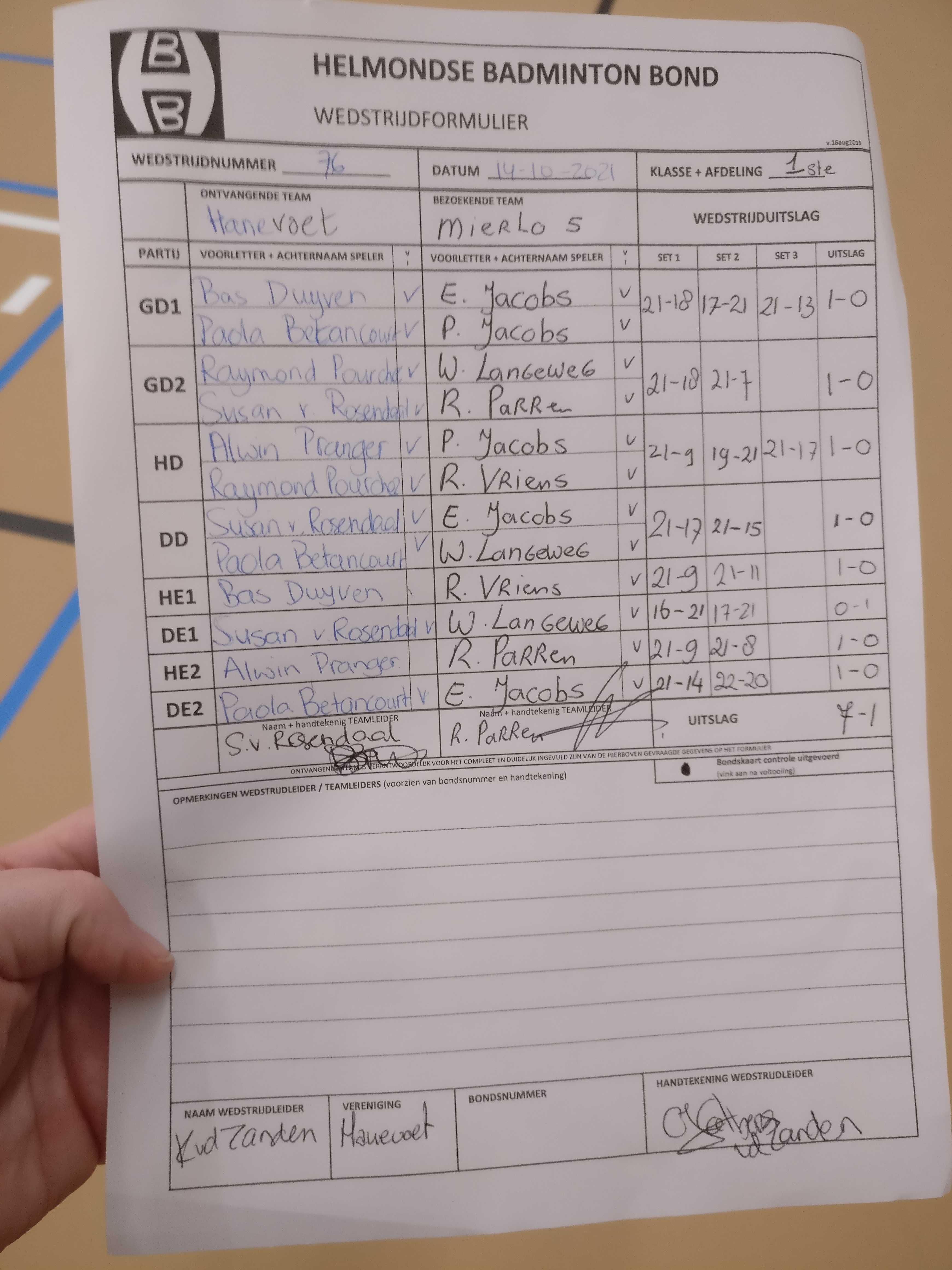 | 76 | do. 14-10-2021 | Hanevoet 2 | - | Mierlo 5 | 1 | 7 - 1 | |||