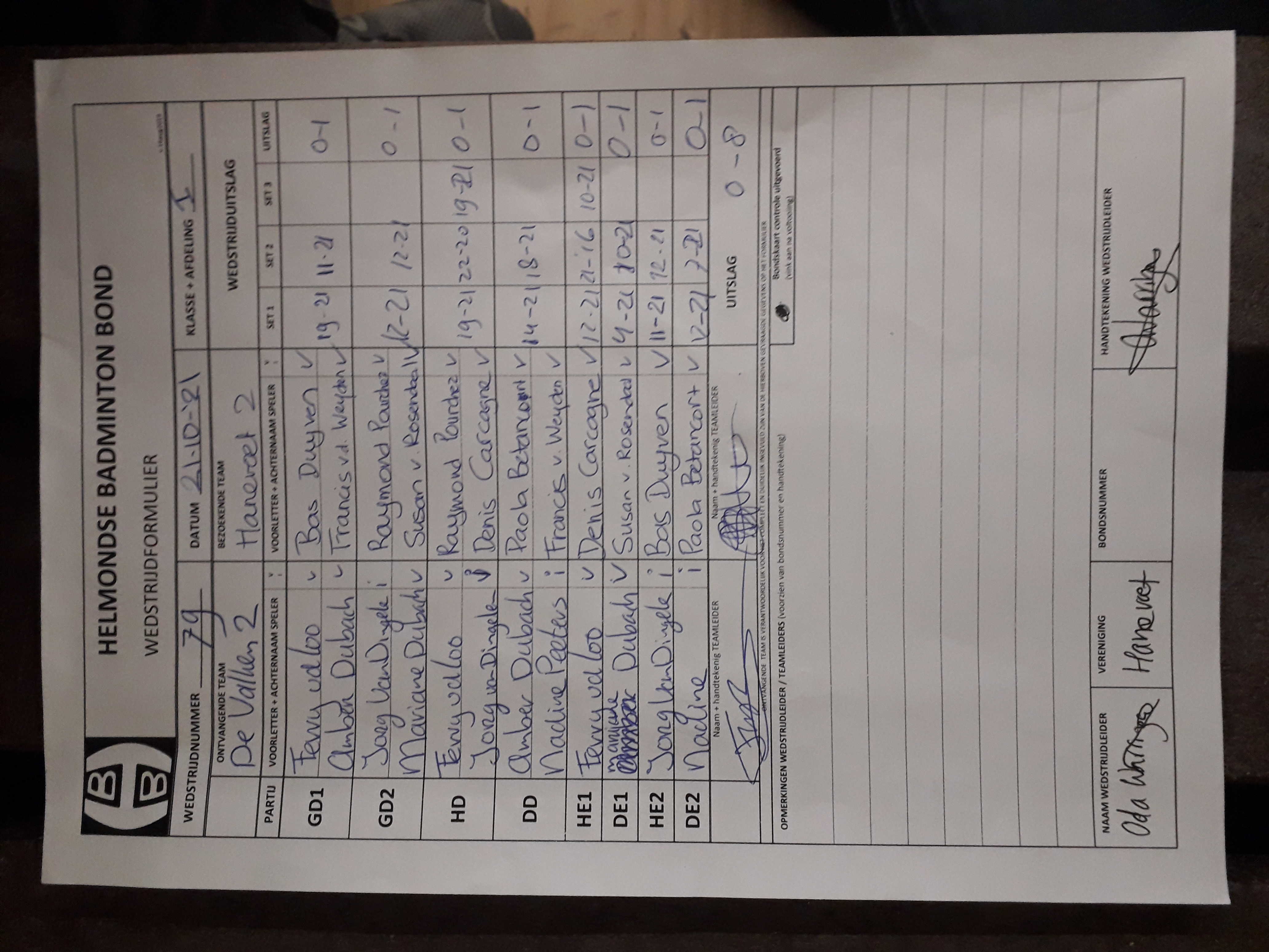 | 79 | do. 21-10-2021 | De Valken 2 | - | Hanevoet 2 | 12 | 0 - 8 | |||