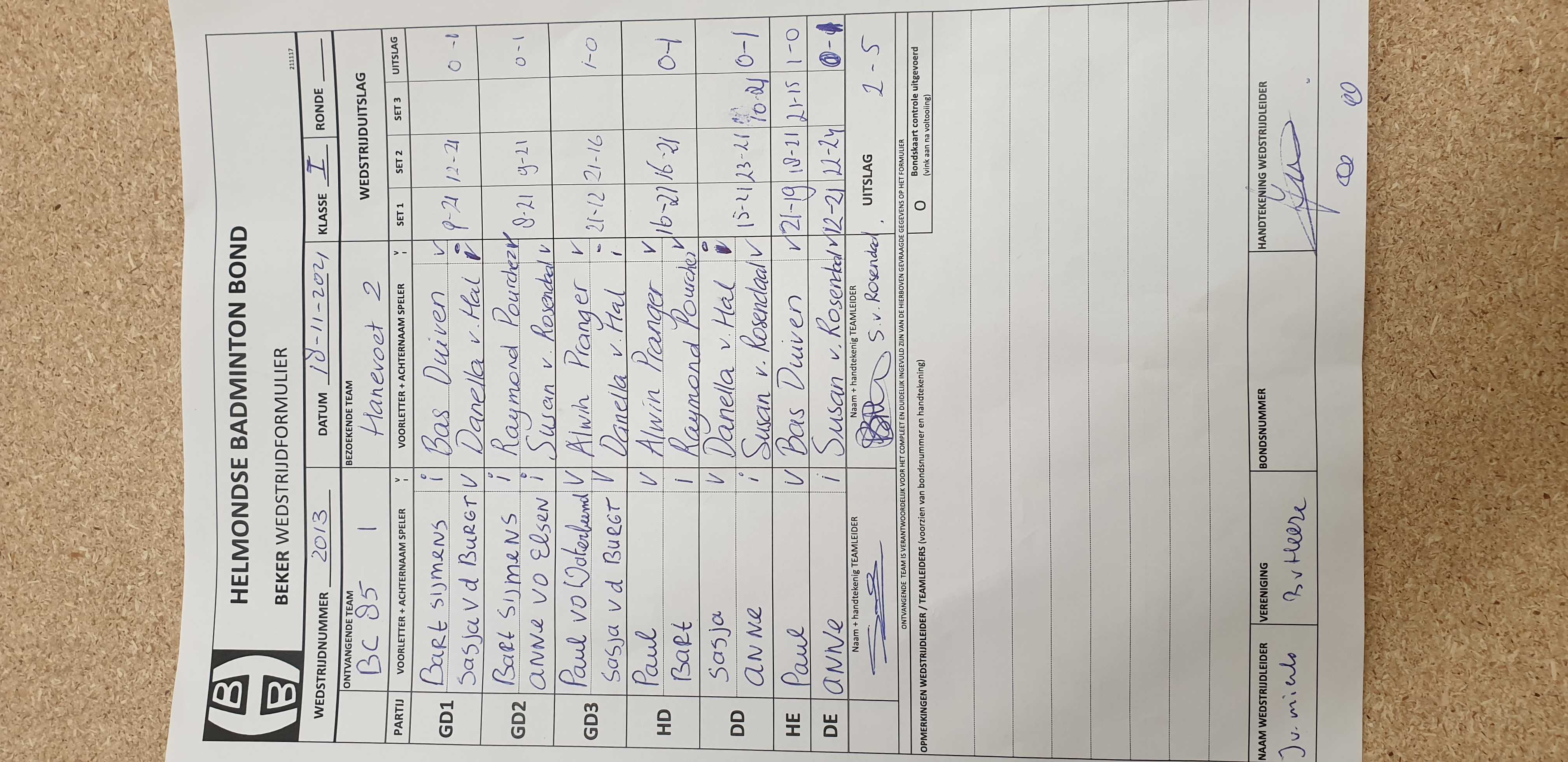 | 2013 | do. 18-11-2021 | BC '85 1 | - | Hanevoet 2 | 12 | 2 - 5 | |||