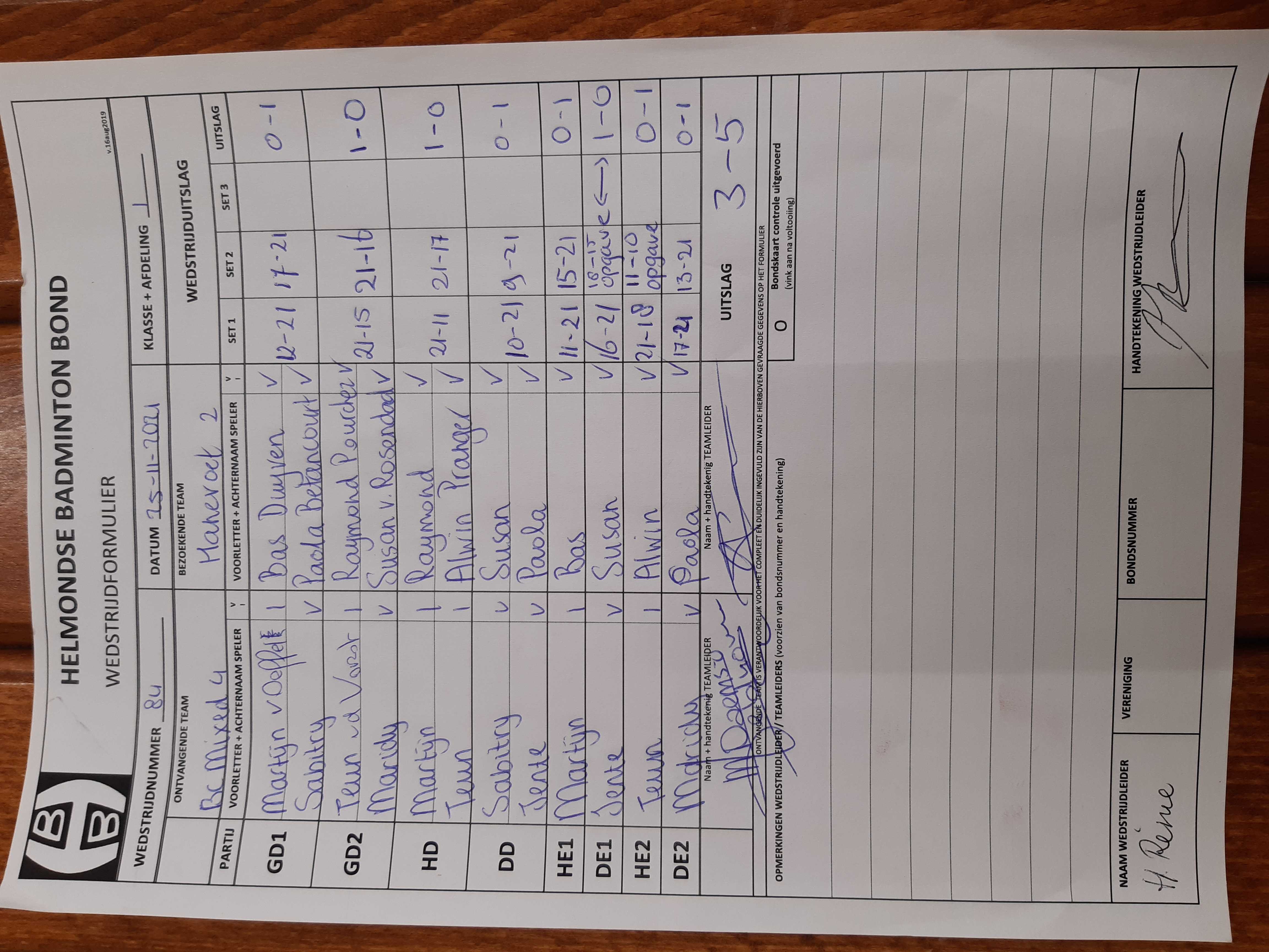 | 84 | do. 25-11-2021 | Mixed 4 | - | Hanevoet 2 | 15 | 3 - 5 | |||